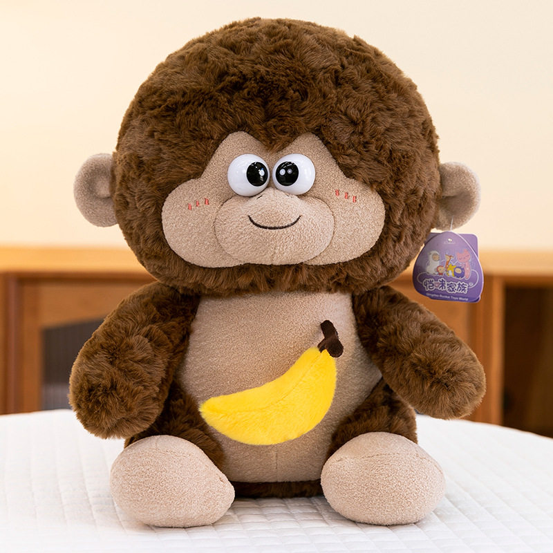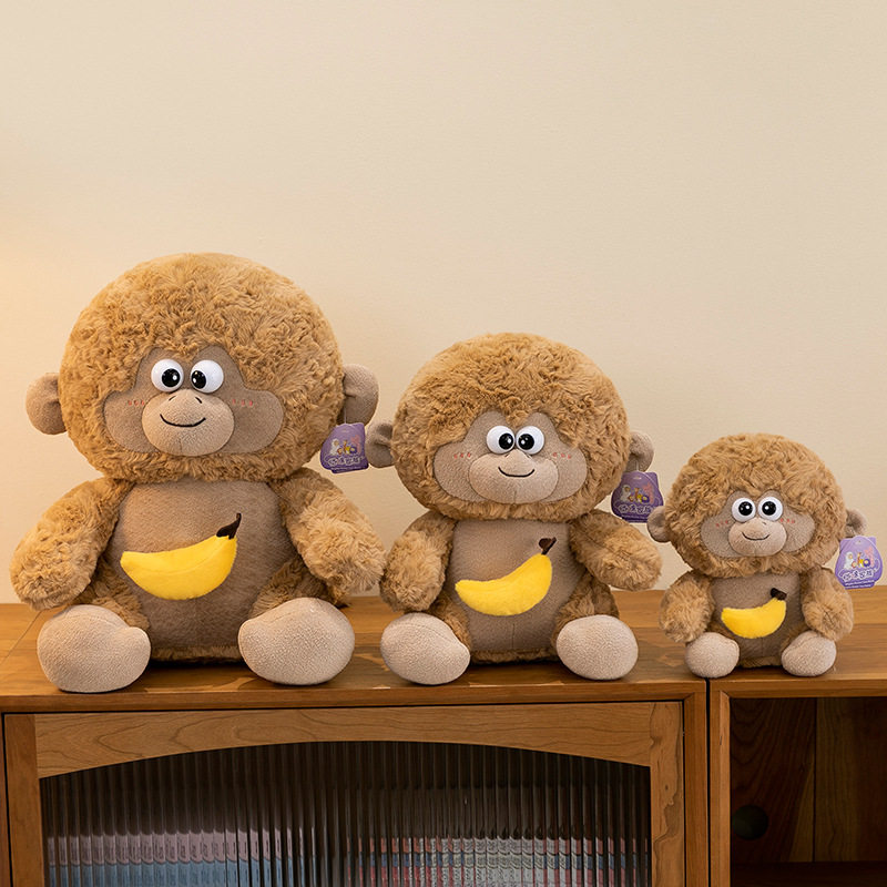 呆萌丁丁猴毛绒玩具可拉拽香蕉猴儿童安抚公仔娃娃机跨境礼品批发
