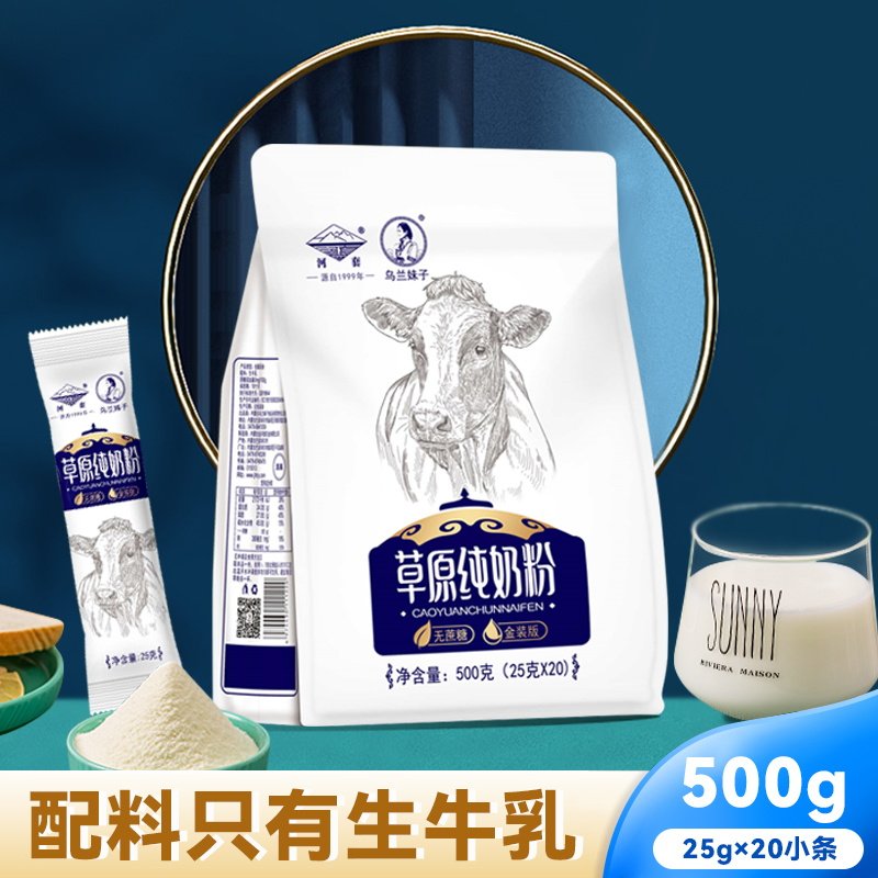 河套全脂纯牛奶粉无添加无蔗糖生牛乳独立小包袋500g成人早餐冲饮