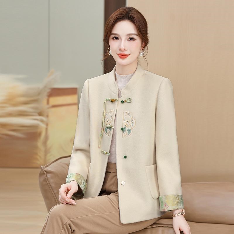 新中式妈妈春装毛呢外套2025新款洋气中老年女装春秋国风盘扣上衣