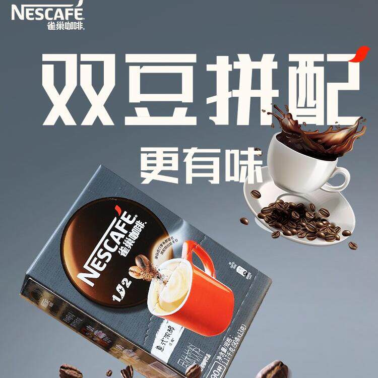 雀巢咖啡1+2特浓咖啡提神三合一速溶咖啡特浓90条装学生