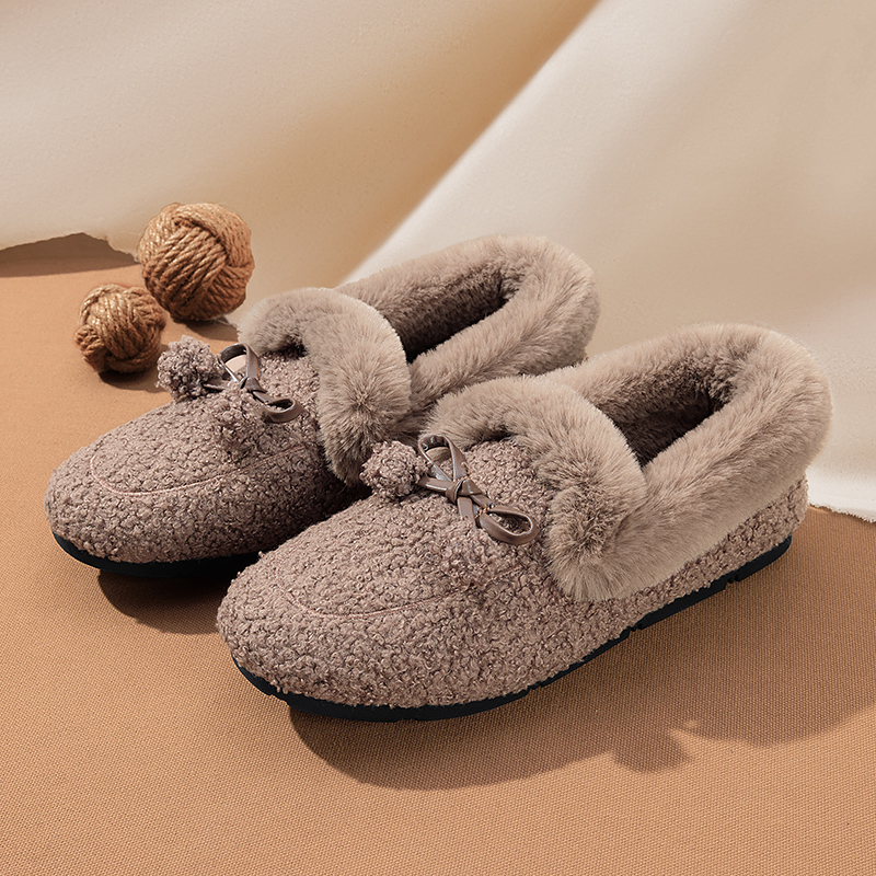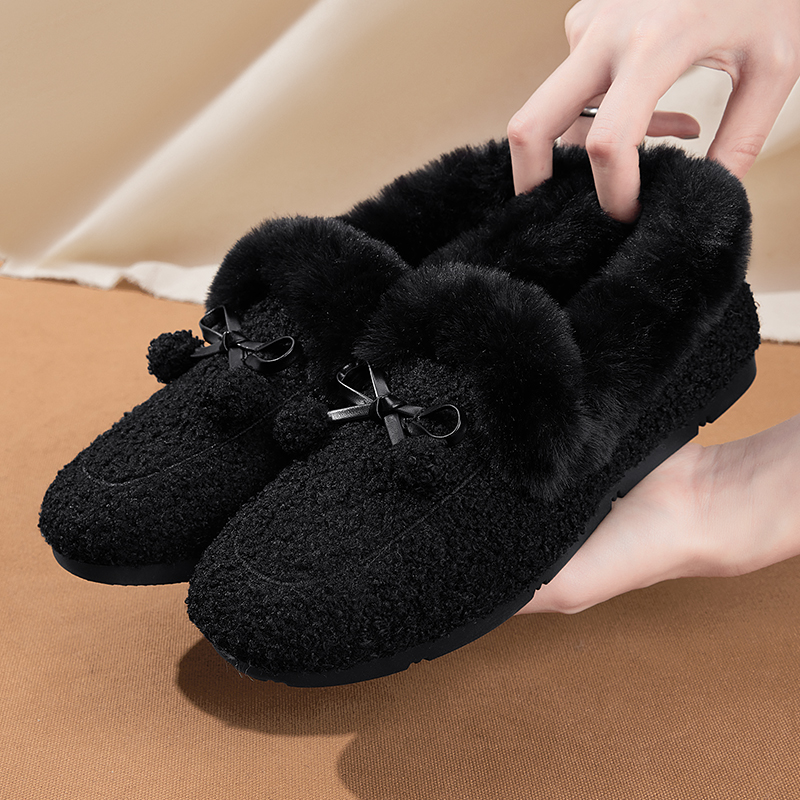 豆豆鞋女冬加绒保暖老北京布鞋软底中老年防滑时尚懒人休闲毛毛鞋