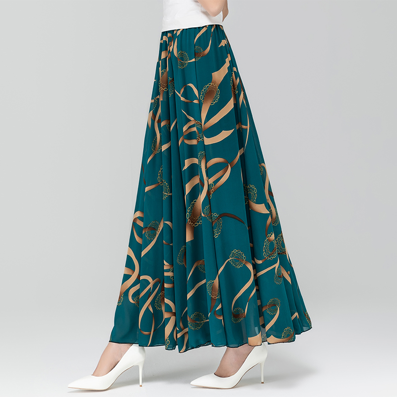 中年妈妈印花雪纺半身裙女中长款中老年夏季松紧腰碎花跳舞长裙子