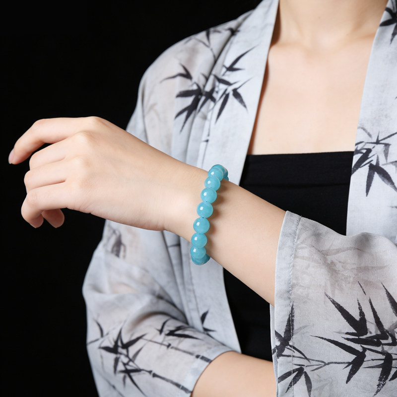 玄灵阁天河石手串蓝绿色水晶宝石散珠链老矿料莫桑比克女男生手链