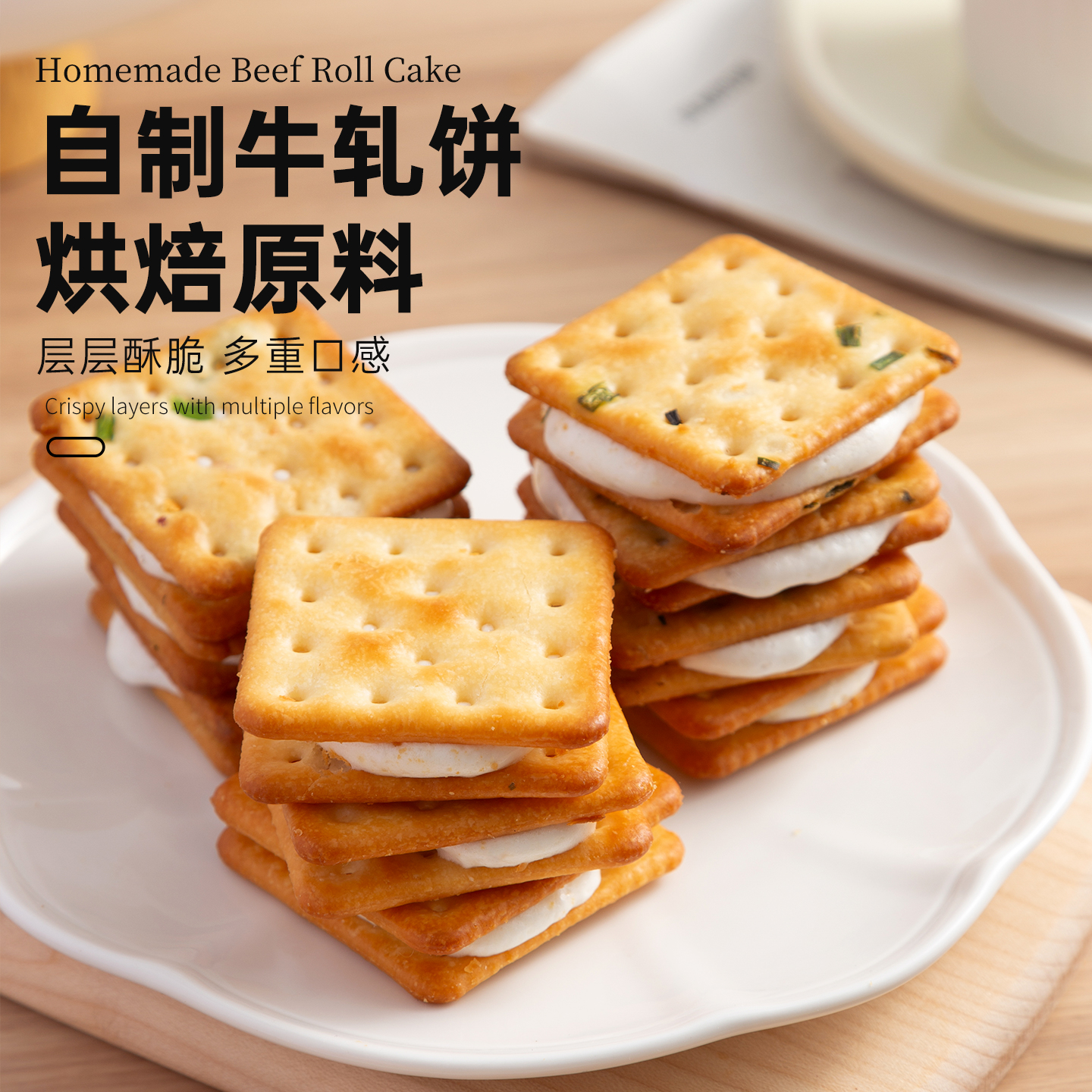班恩苏打饼干牛轧糖饼干香葱味手工牛扎饼夹心家用烘焙专用原材料