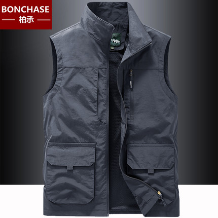 春秋马甲男士户外休闲多袋工装背心宽松大码速干立领坎肩马夹外套