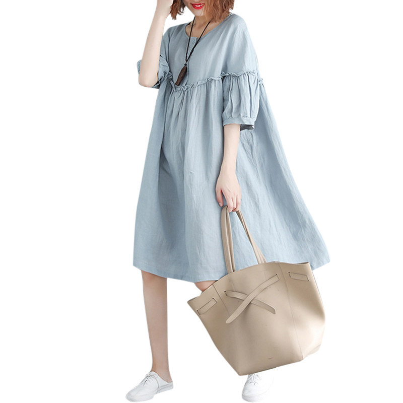 大码女装夏装洋气遮肚子显瘦藏肉高腰娃娃裙宽松减龄中长款连衣裙