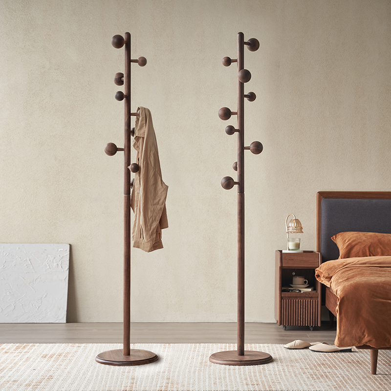 衣架卧室落地实木家o用挂衣架客厅简约室内挂架进门黑胡桃木衣帽