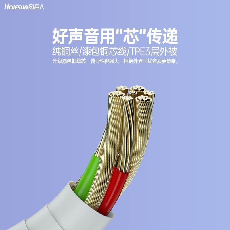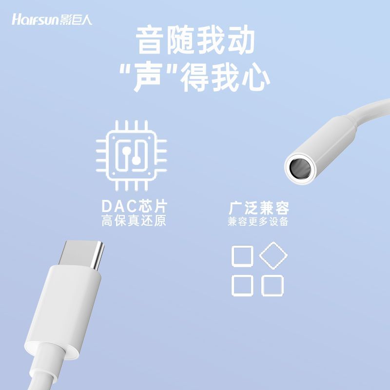 影巨人有线耳机转接头圆孔转typec口适用华为小米苹果平板音频线