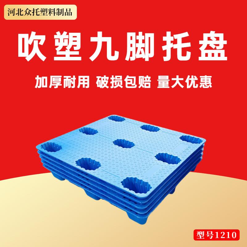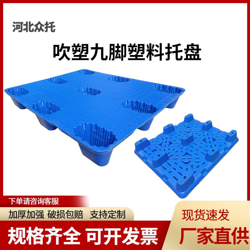 九脚吹塑托盘叉车板川字平板塑料托盘塑胶卡板栈板物流塑胶垫仓板