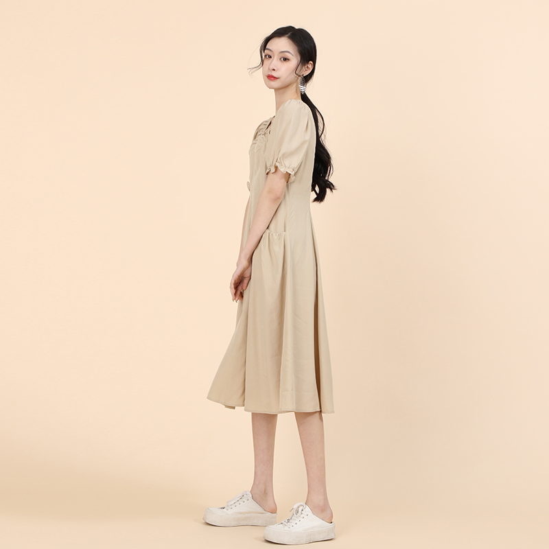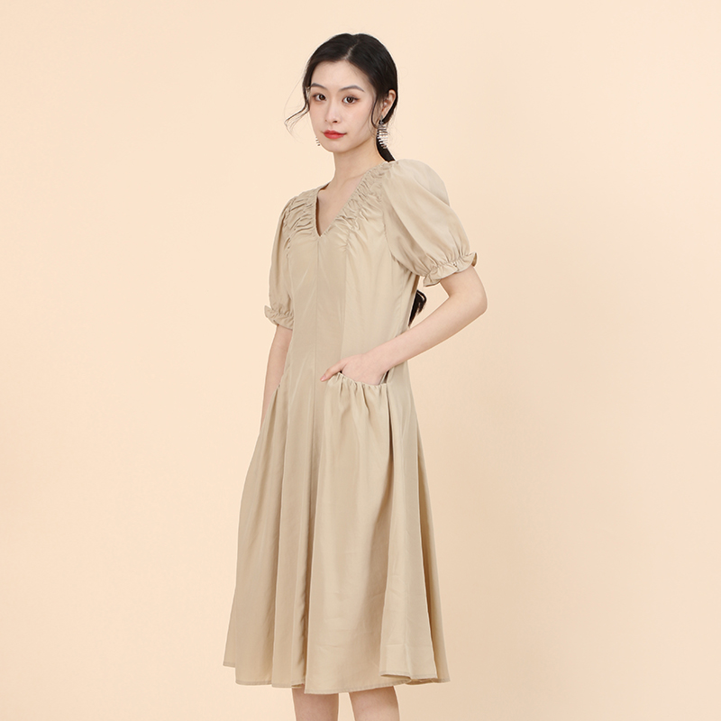WEWE唯唯夏季新品女装V领收腰a字气质显瘦女士连衣裙