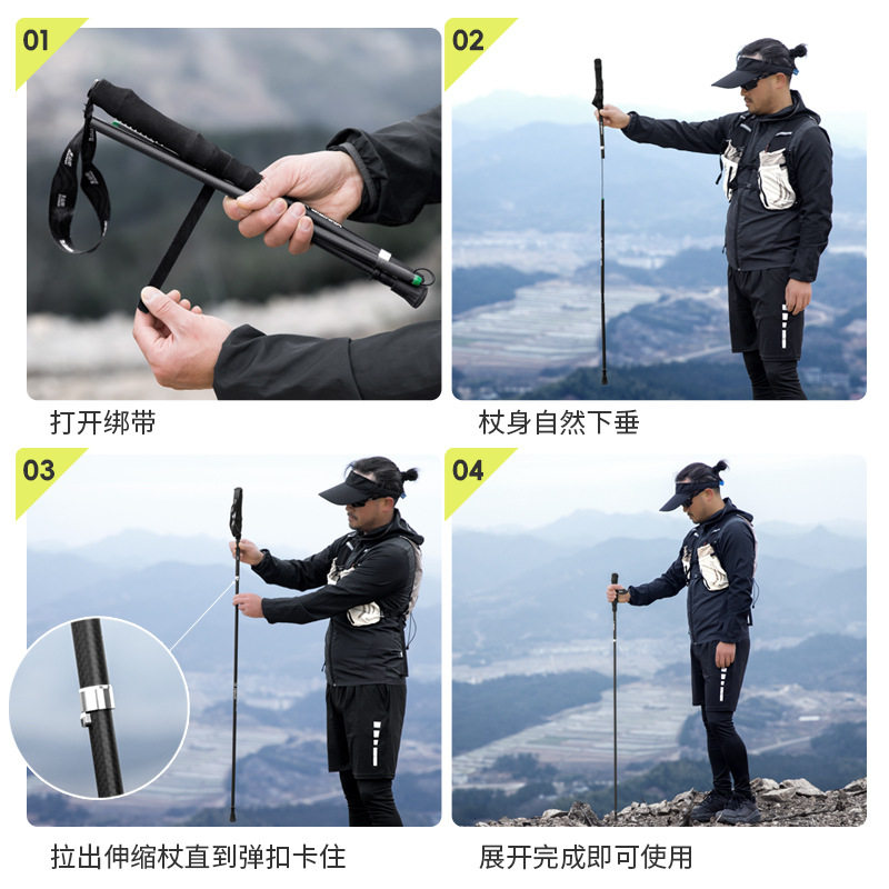 北山狼碳素登山杖超轻折叠外锁手杖徒步爬山户外拐杖多功能装备