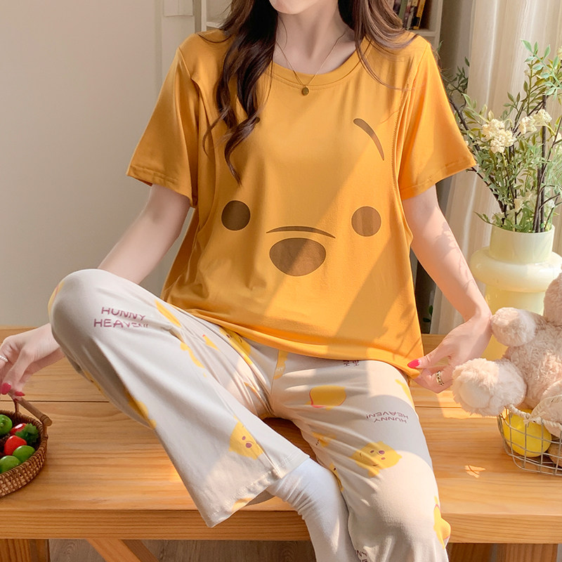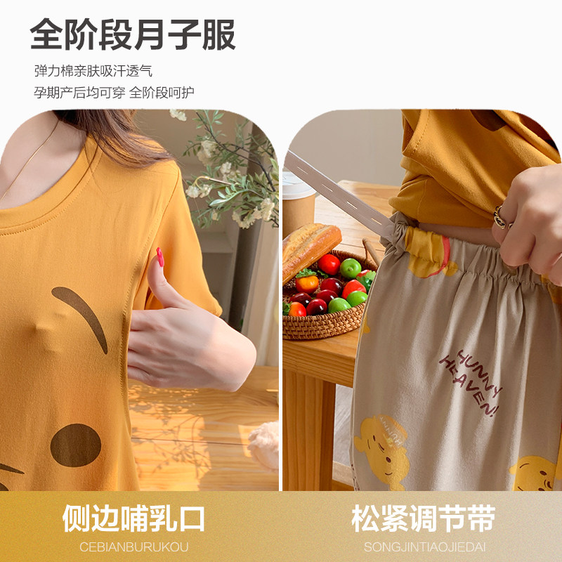 三件套夏季月子服薄款产后纯棉孕妇睡衣女夏哺乳产妇喂奶短袖短裤