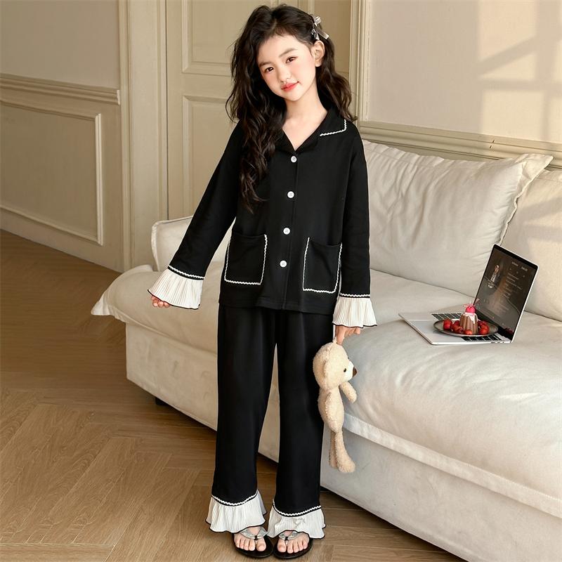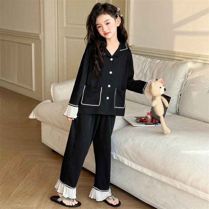 女童睡衣春秋款纯棉长袖2025新款儿童家居服套装女孩中大童两件套