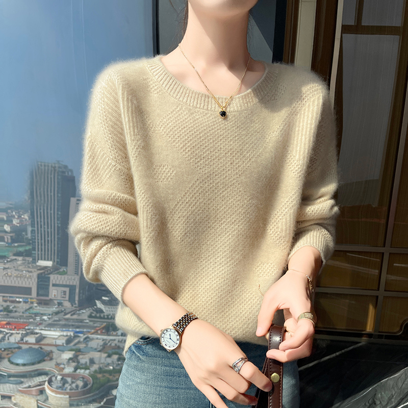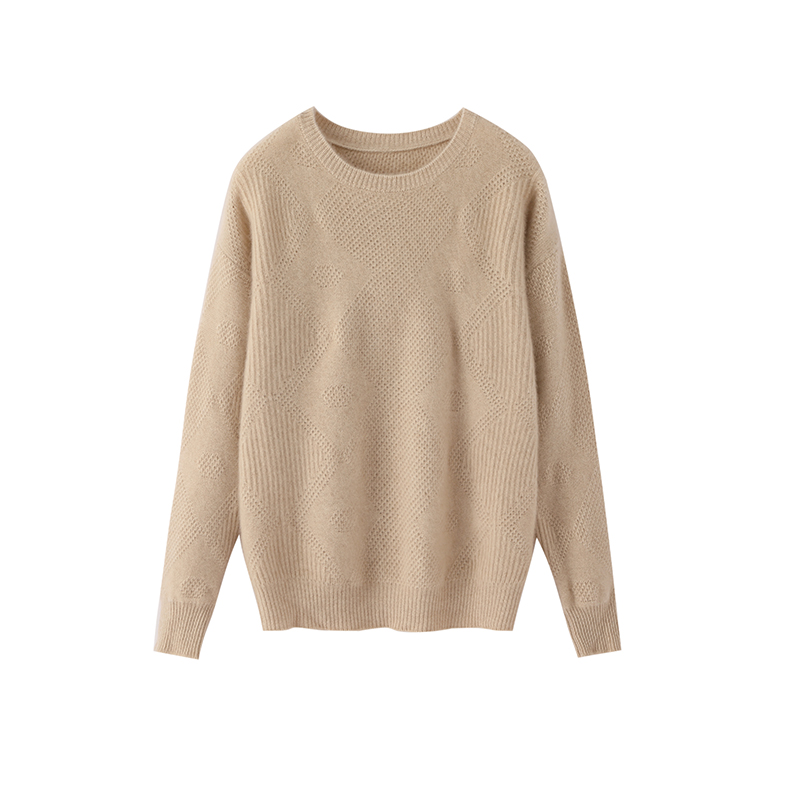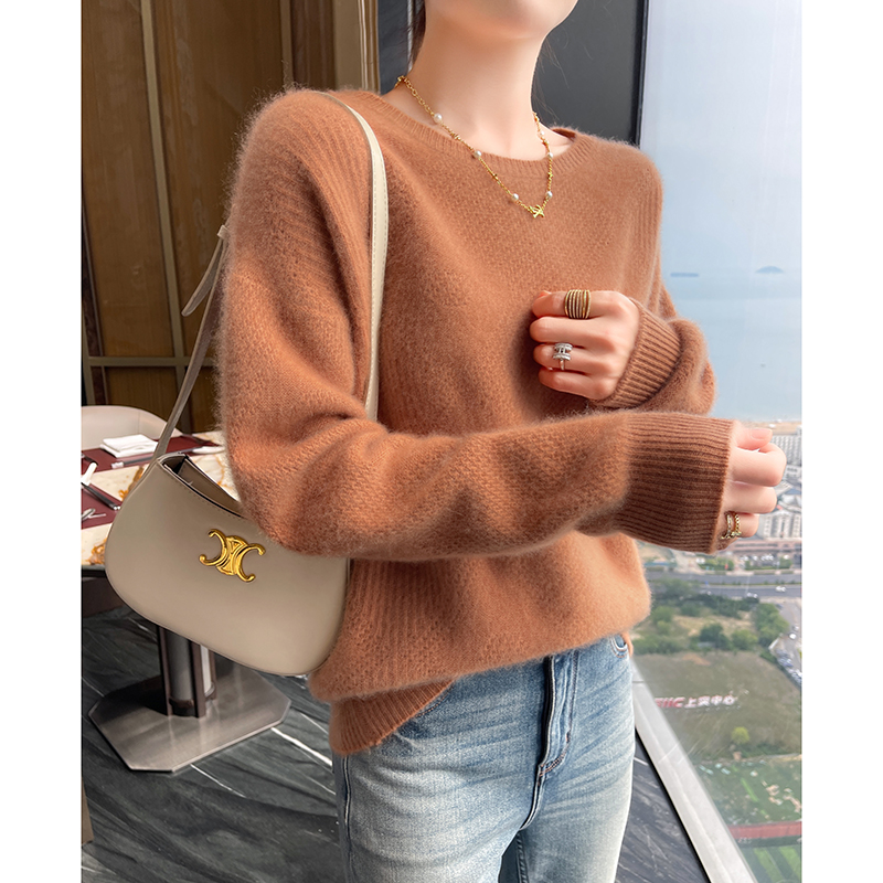 圆领羊绒衫女100纯山羊绒宽松慵懒风套头落肩袖针织打底纯色毛衣