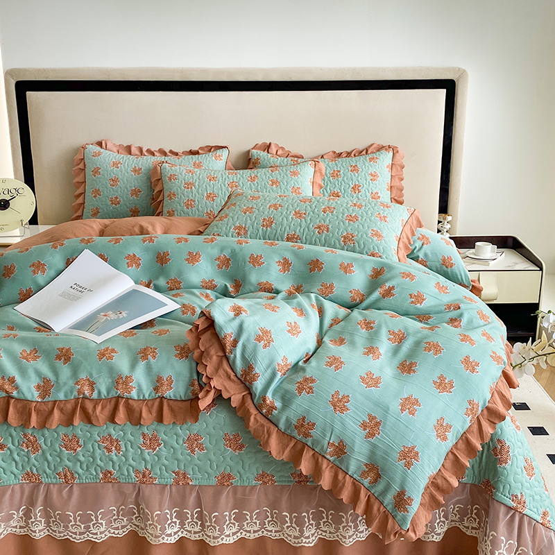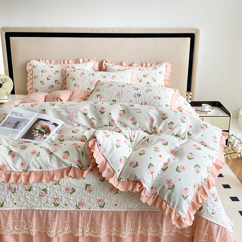 小红书推荐公主风夹棉床盖四件套水洗棉麻被套全棉纯棉三件套床裙