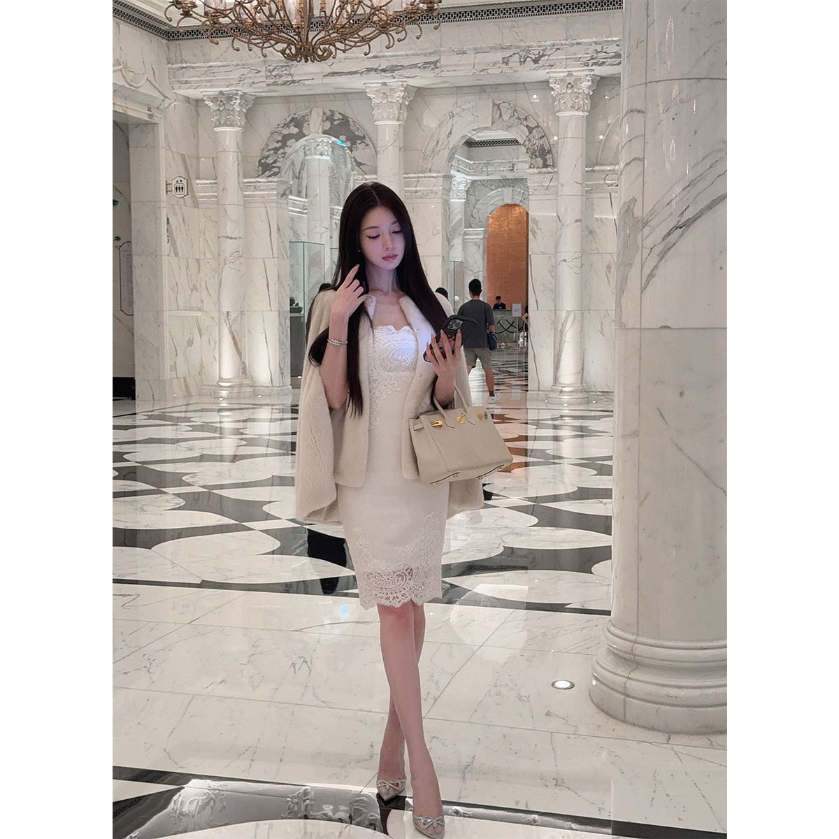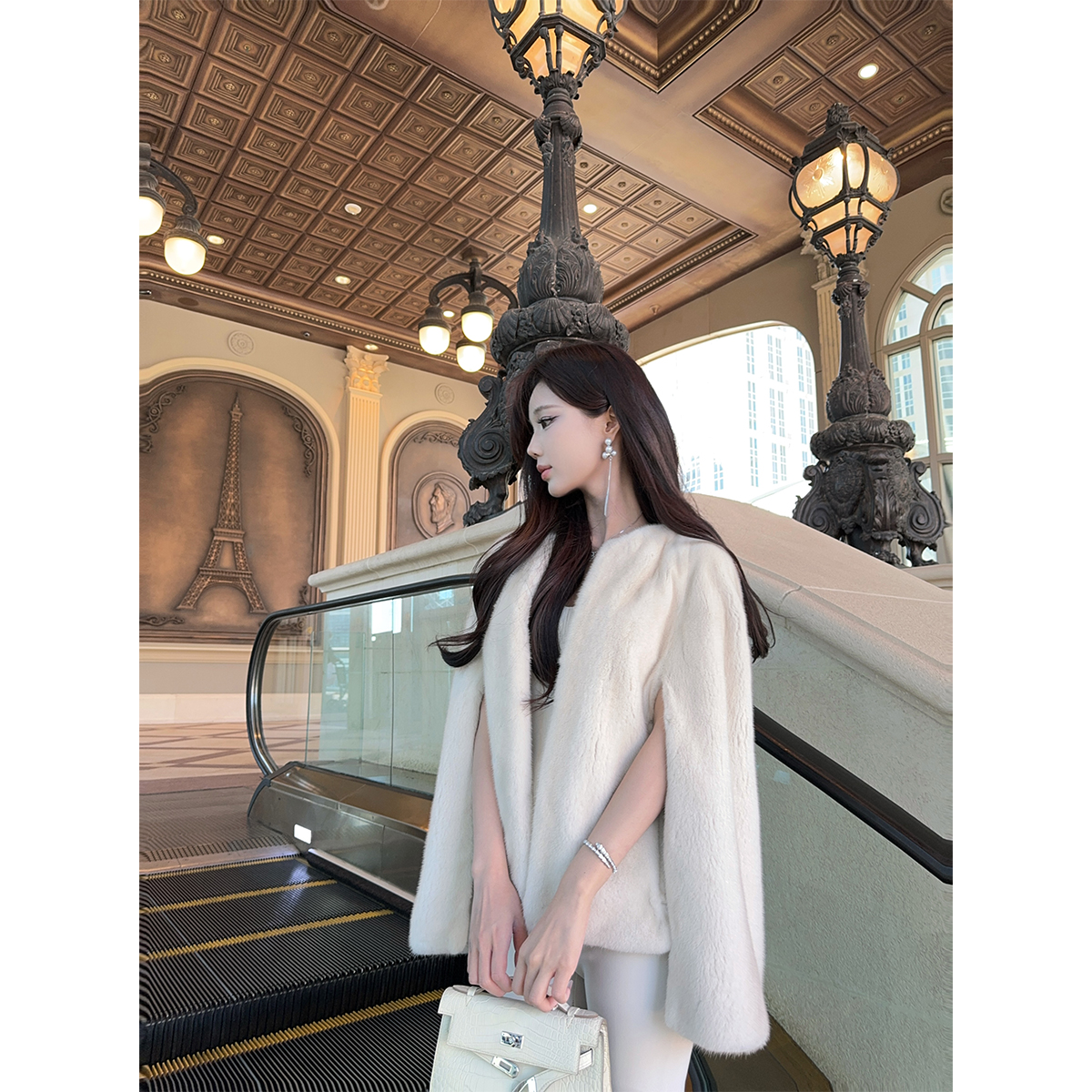 DFAY 2xp珍珠色水貂斗篷气质名媛百搭显瘦皮草毛毛外套女冬季新款