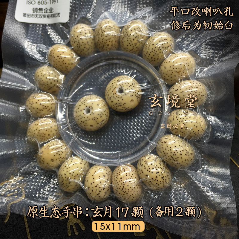 海南原生态星月菩提手串单圈大籽15/16mm玄月苹果圆黄籽佛珠手链