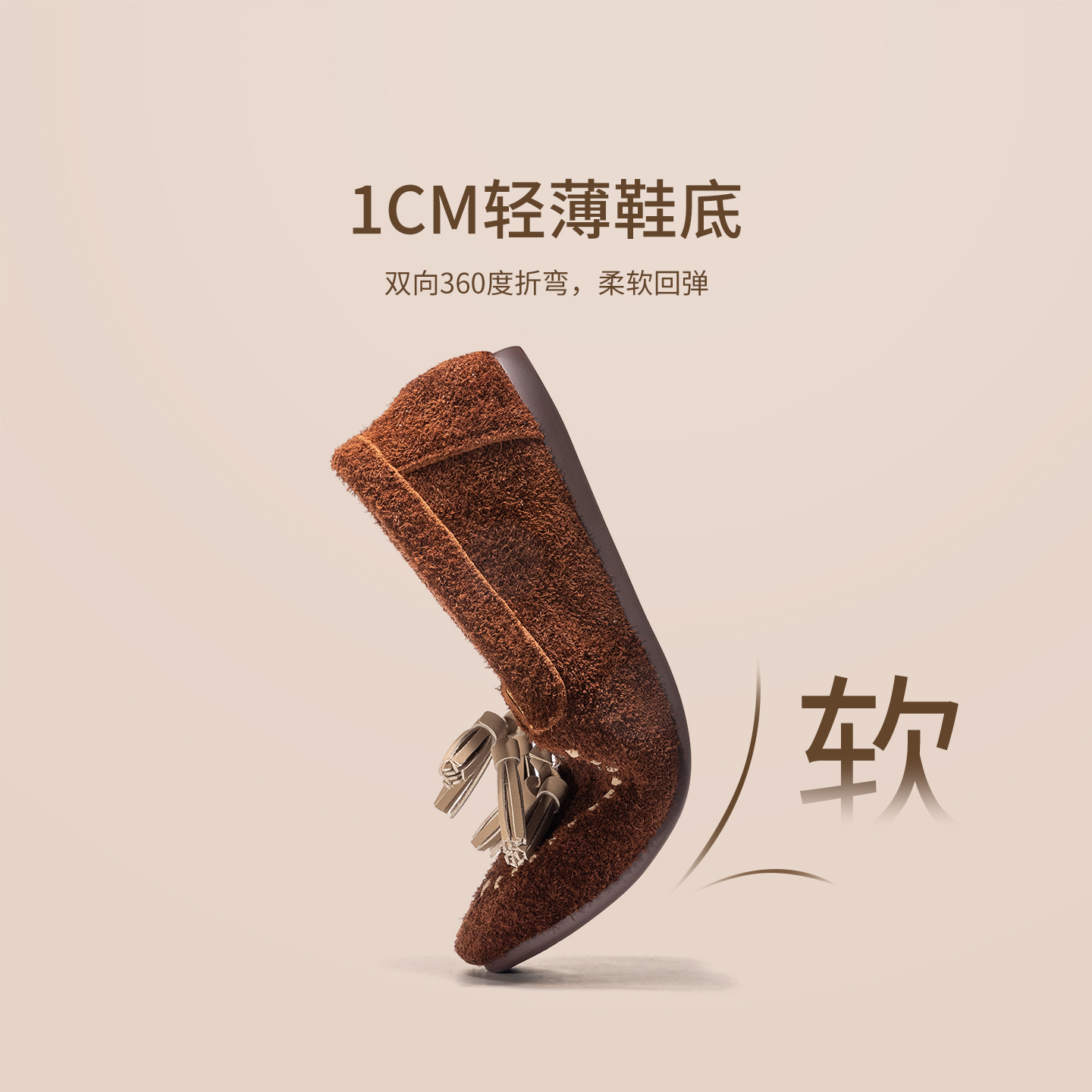 奥康 女鞋2025秋季豆豆鞋真皮流苏舒软一脚蹬懒人鞋舒适平底鞋