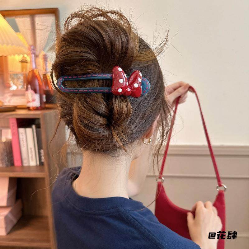可爱米奇红迪士尼拍照必备米奇红蝴蝶结发夹红色蝴蝶结鸭嘴夹韩系
