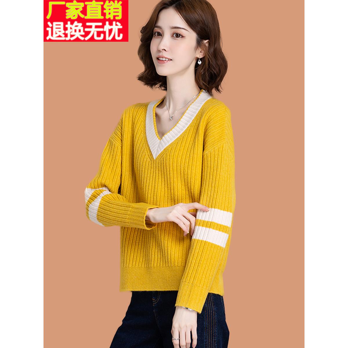 羊毛衫女士毛衣宽松外穿慵懒洋气鸡心领针织打底衫2025秋冬季加厚