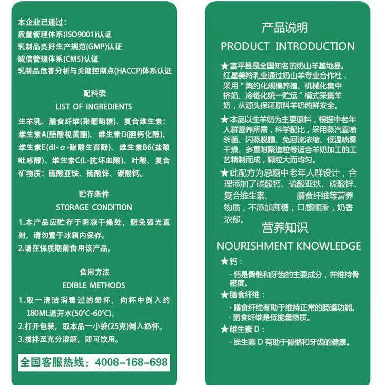 美羚羊奶粉成人无蔗糖中老年羊奶粉独立包装新旧包装随机陕西富平