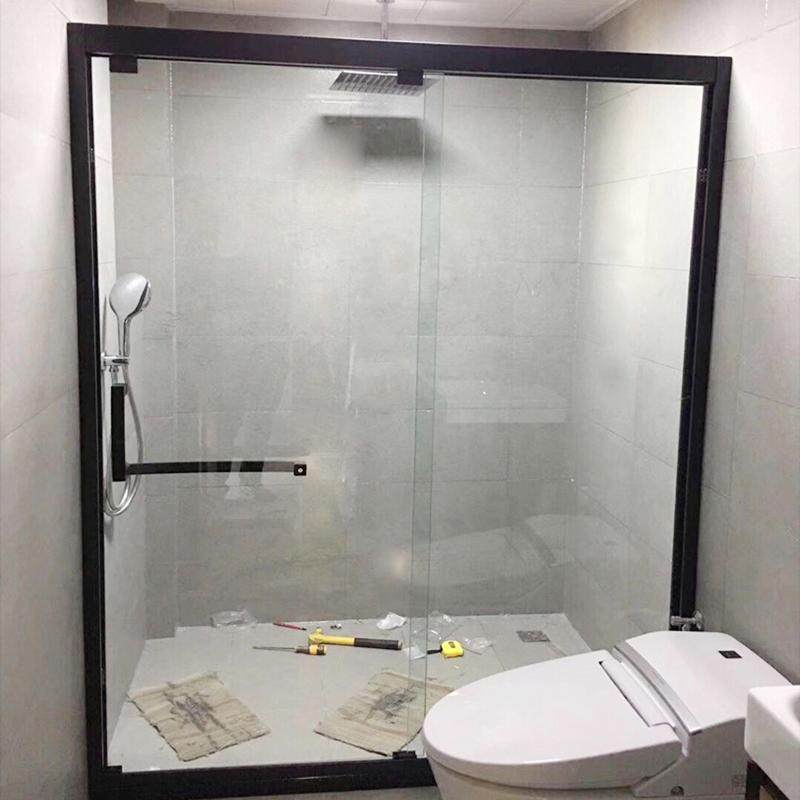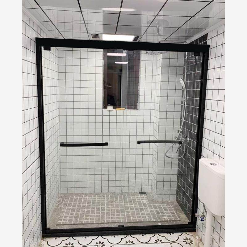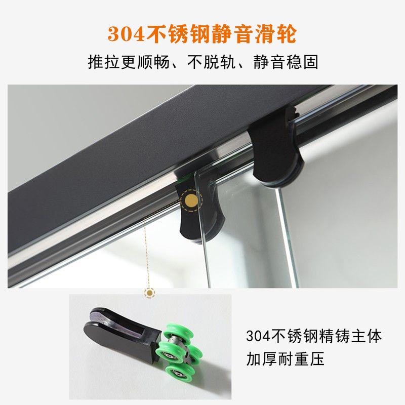 定制一字型304哑黑不锈钢淋浴房钢化玻璃淋浴隔断推拉门移门