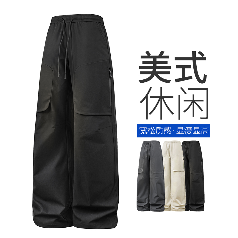 新款春秋季男冲锋裤裤子工装美式时尚休闲潮流直筒宽松男裤