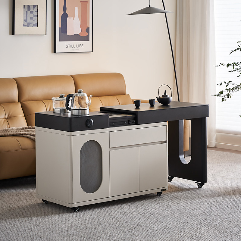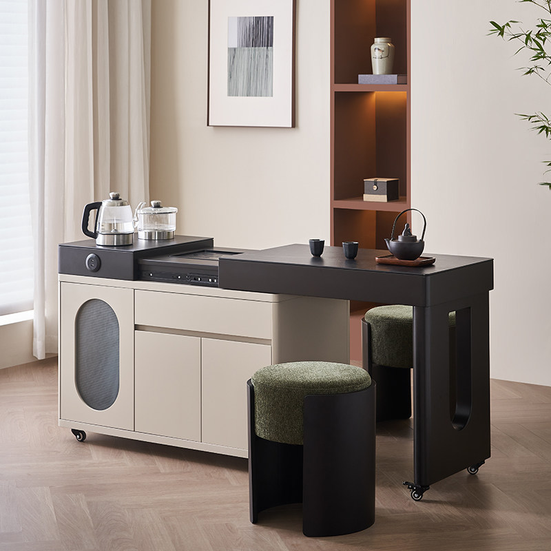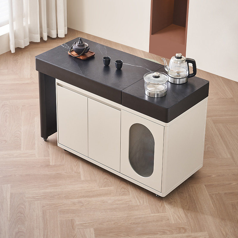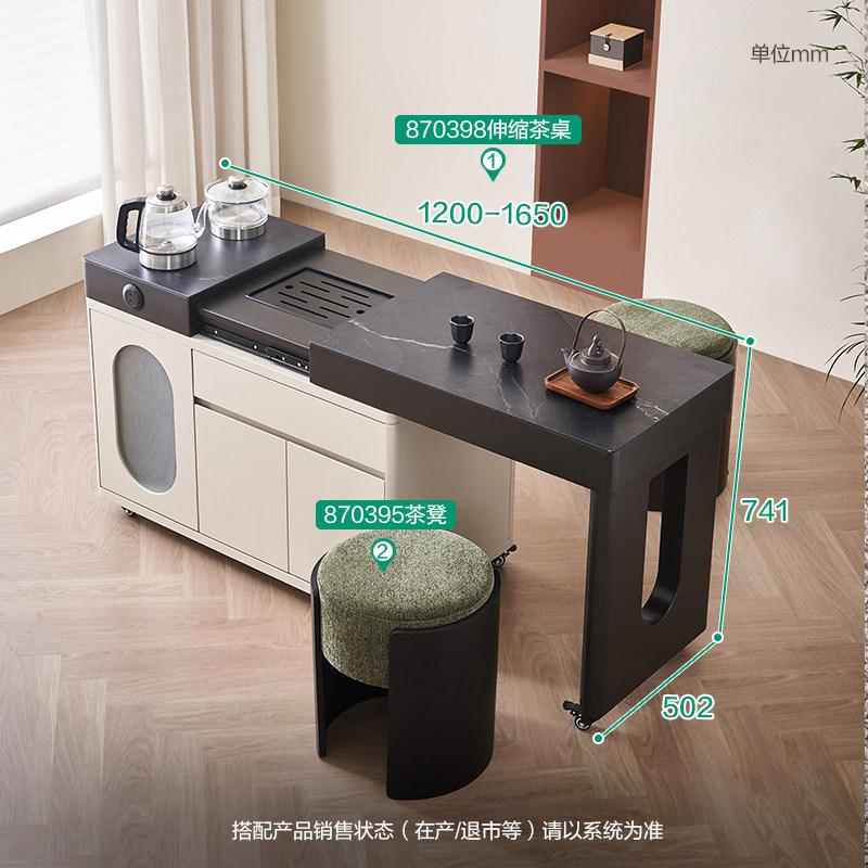 全友家居门店同款 870398 钢化玻璃火烧石台面 可移动茶桌茶台柜
