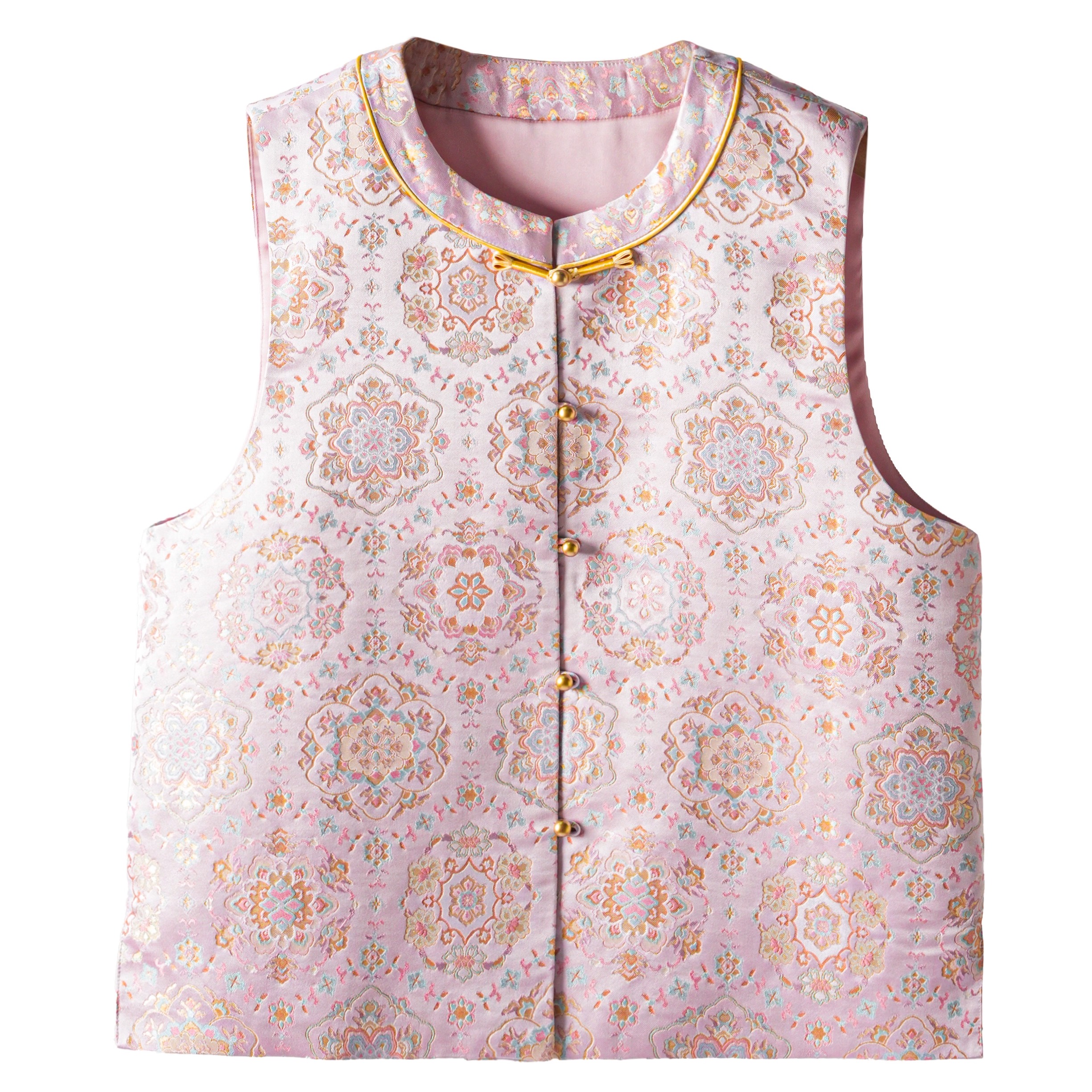 粉色宝相!宋锦桑蚕丝新中式对襟马甲外套真丝国风上衣开衫外搭秋