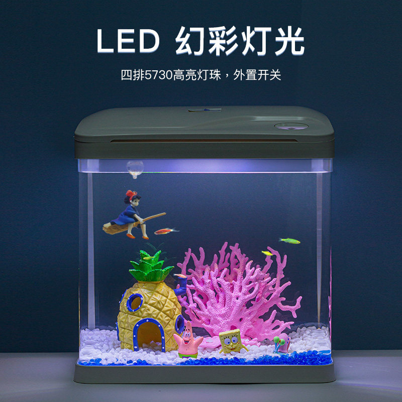 鱼缸客厅小型家用桌面玻璃循环过滤制氧免换水生态懒人造景水族箱