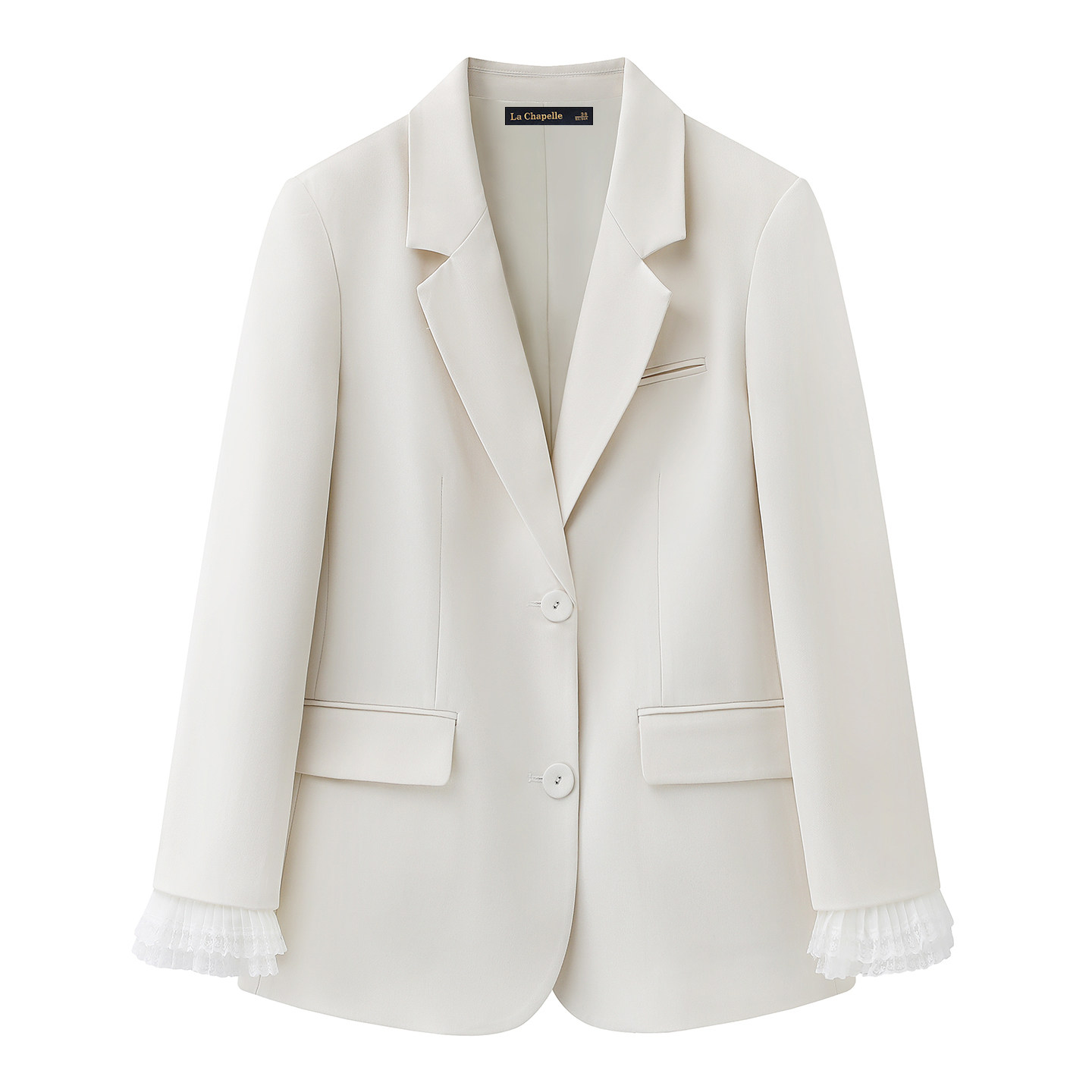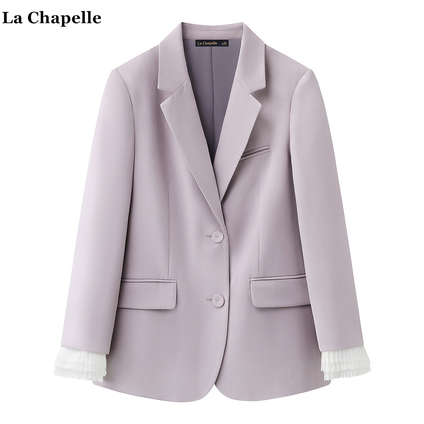 拉夏贝尔/La Chapelle韩系拼接花边小西装女春季新款通勤气质西服