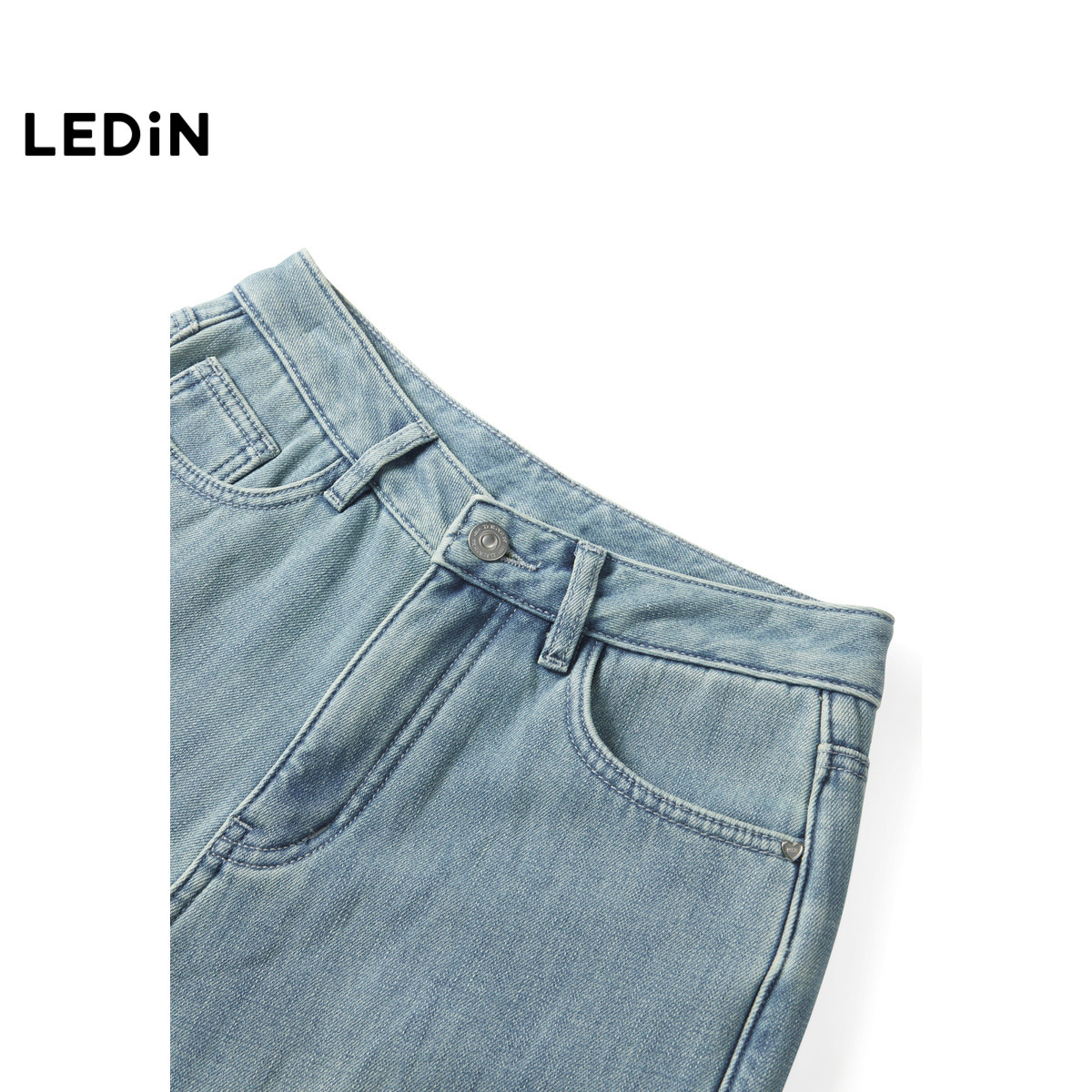 【商场同款】乐町冬季新款加绒洗水牛仔阔腿裤C1HAE4408