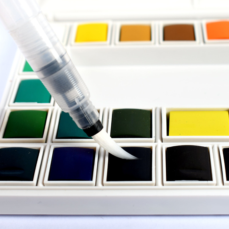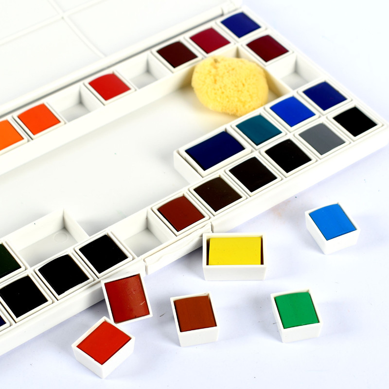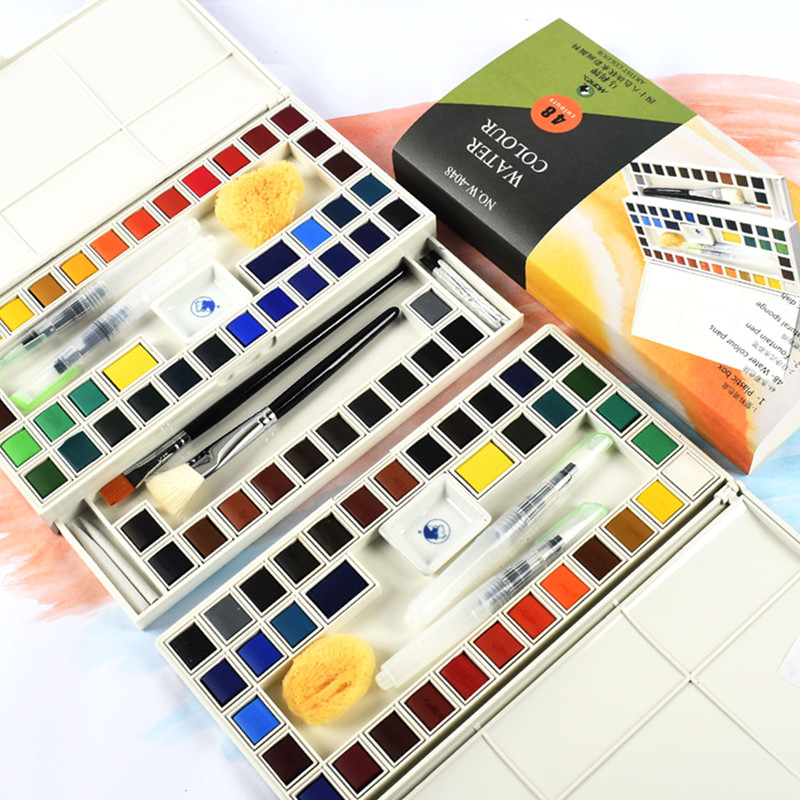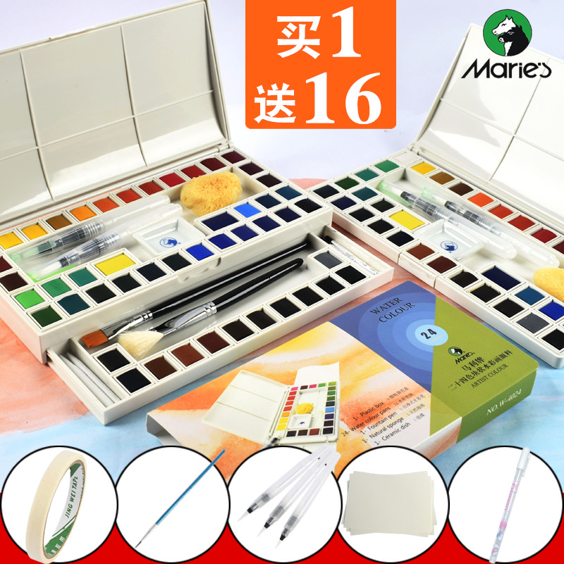 马利固体水彩颜料画笔套装初学者手绘自来水笔便携工具 玛丽牌调色盒分装马力水粉24色36色48色马丽粉饼固彩