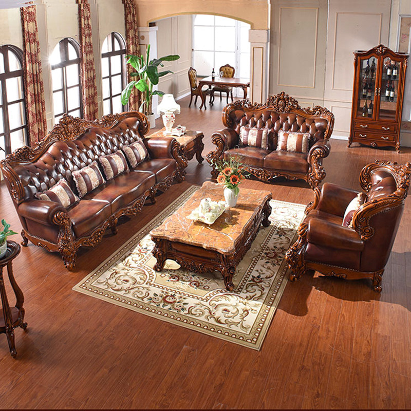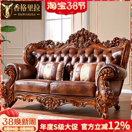 新古典进口头层牛皮真皮海绵沙发