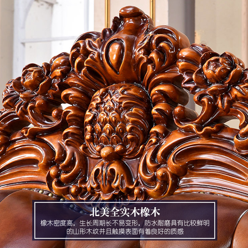欧式真皮沙发 美式别墅客厅实木宫廷复古法式家具124U型皮艺沙发