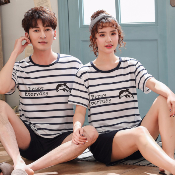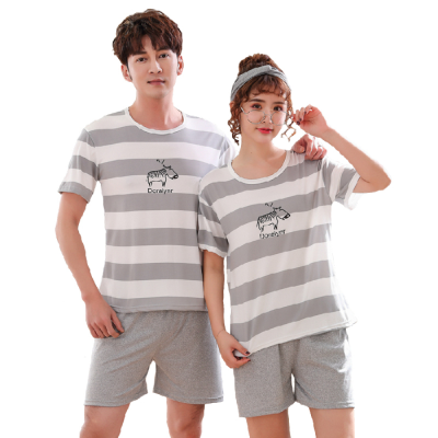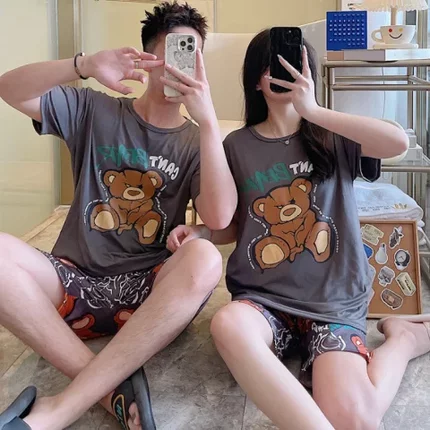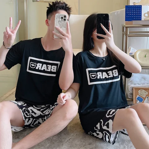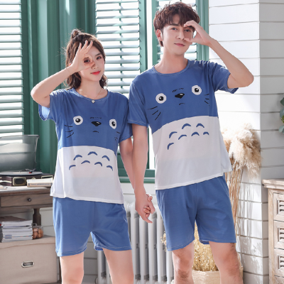 夏季情侣薄款睡衣女可爱卡通两件套装夏天男士短袖休闲宽松家居服