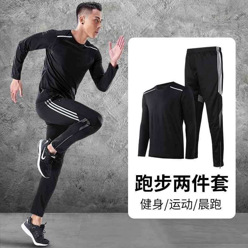 高档跑步运动套装男士训秋服季速干衣长冬天袖健身衣服专业晨跑练