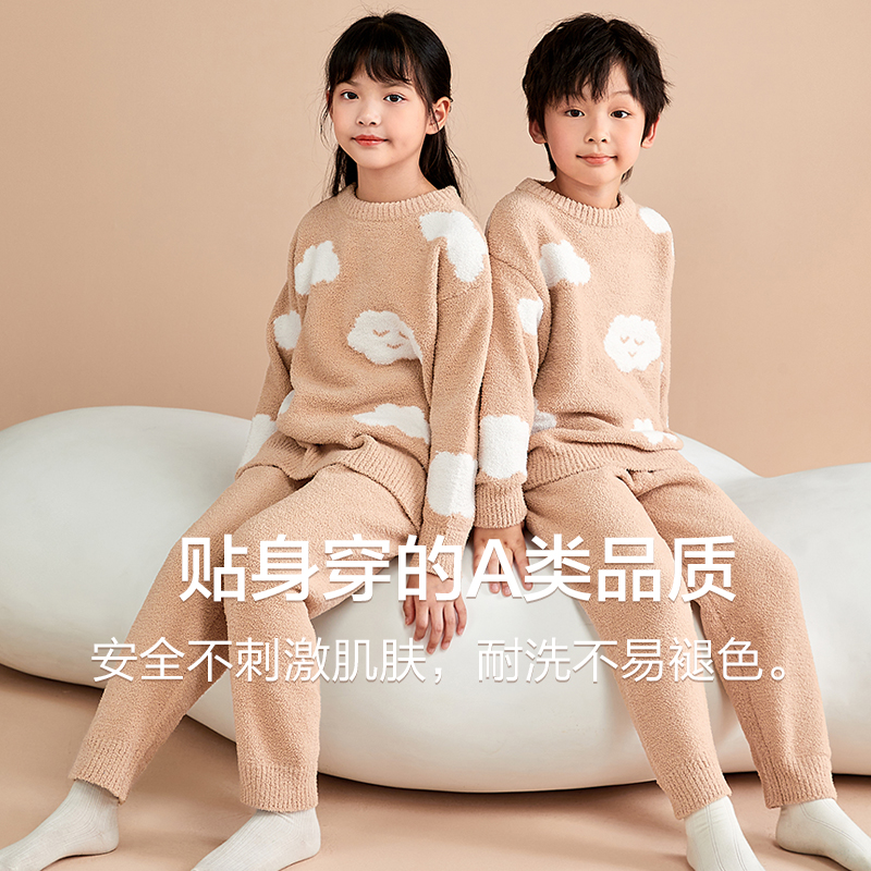 红豆儿童半边绒睡衣宝宝加绒居家服套装男童女童可外穿珊瑚绒秋冬