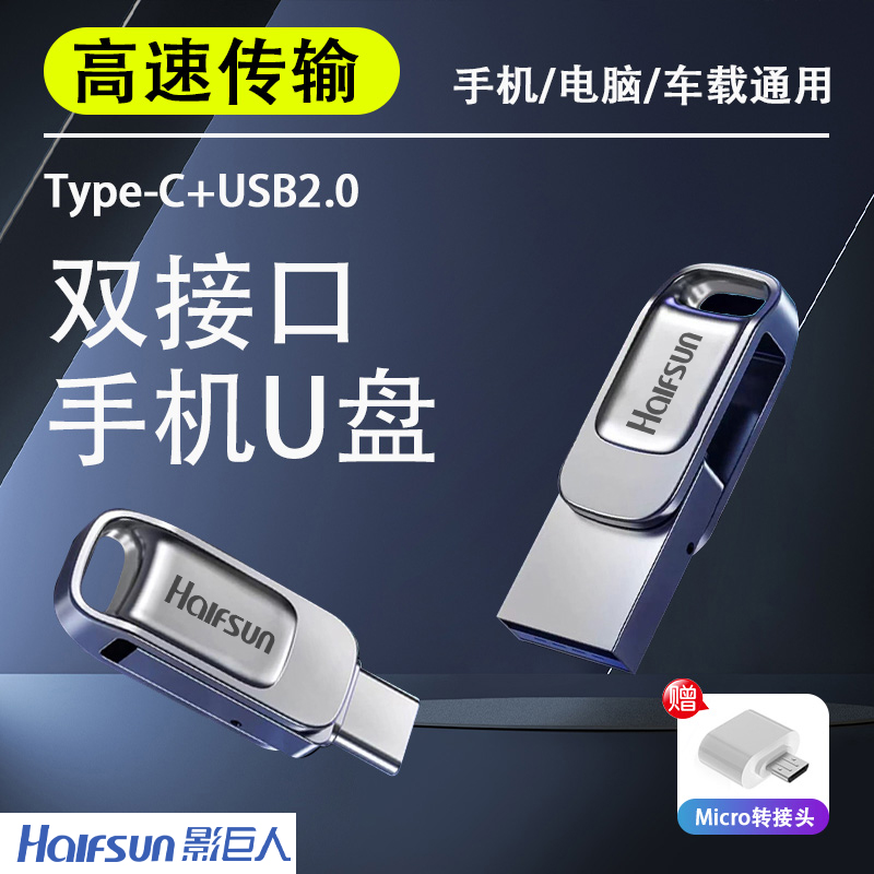 影巨人256G大容量U盘type-c手机电脑两用车载办公高速学生优盘usb