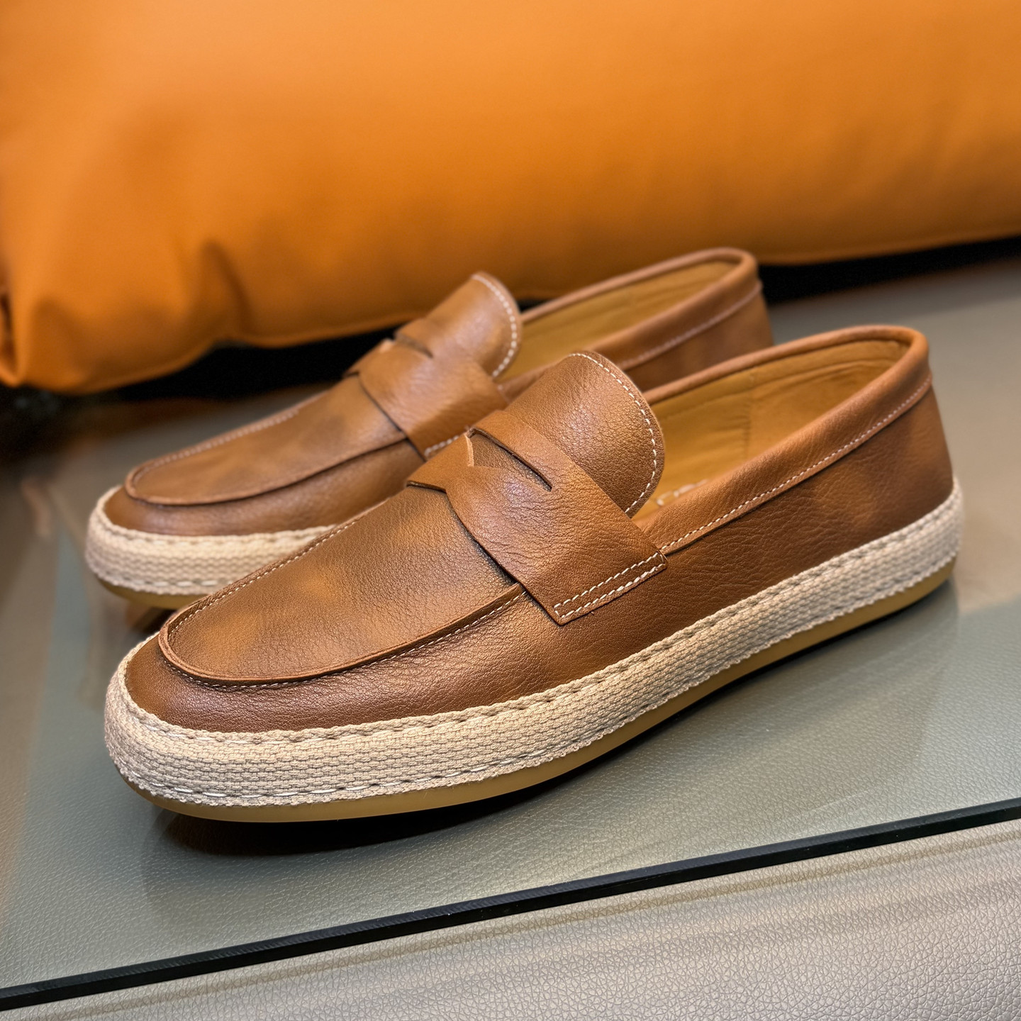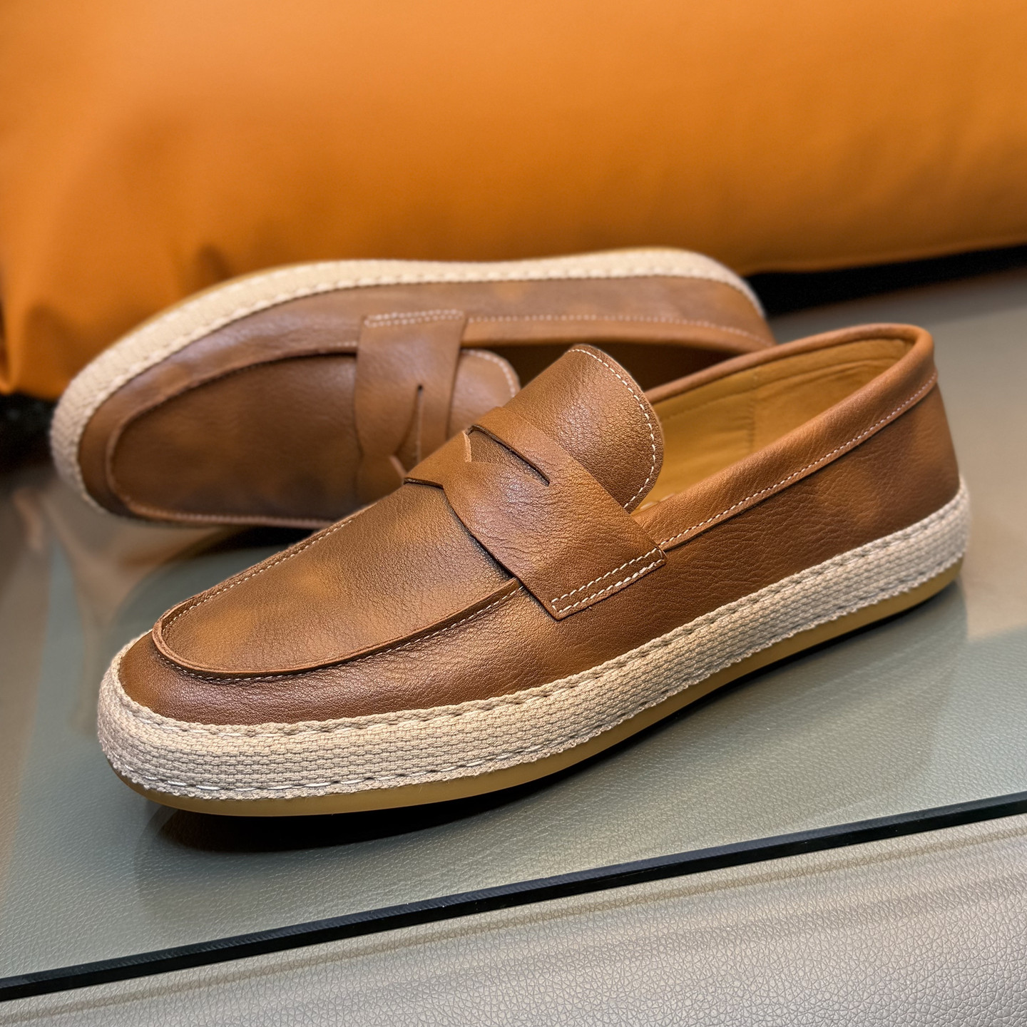 欧洲站男鞋真皮乐福鞋男一脚蹬豆豆鞋复古休闲皮鞋夏季透气渔夫鞋