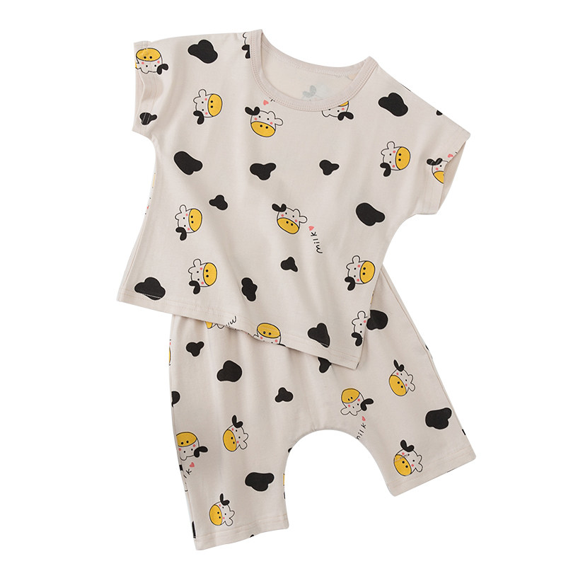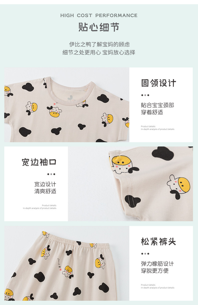 伊比之鸭宝宝短袖休闲套头男童短裤女童七分裤套装夏季家居服可爱