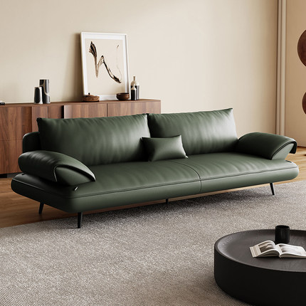 意式极简绿色头层真牛皮沙发客厅小户型直排现代帆船皮艺沙发新款