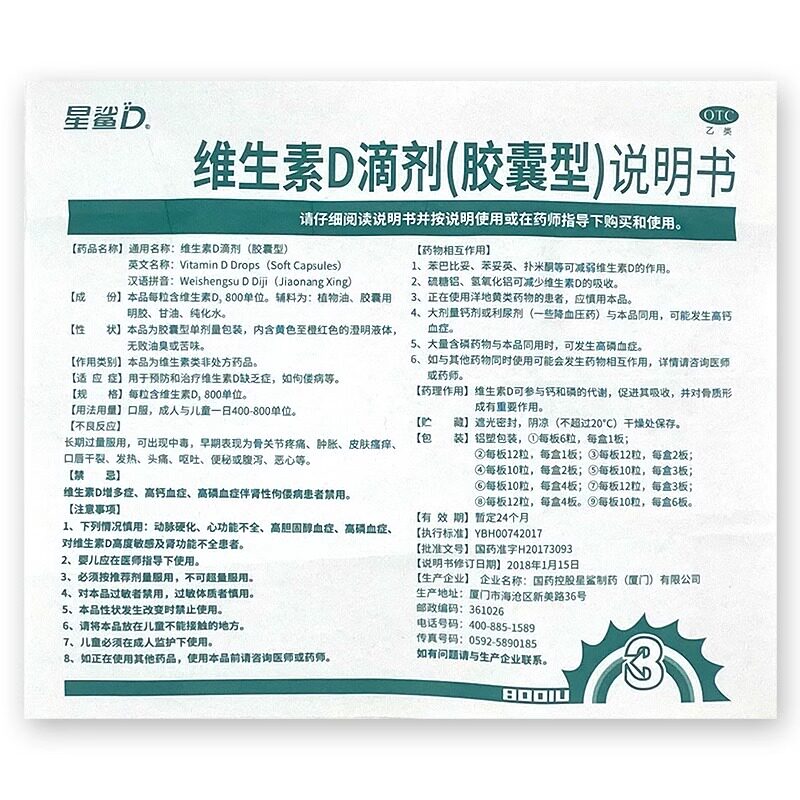 【星鲨】维生素D滴剂800IU*30粒/盒
