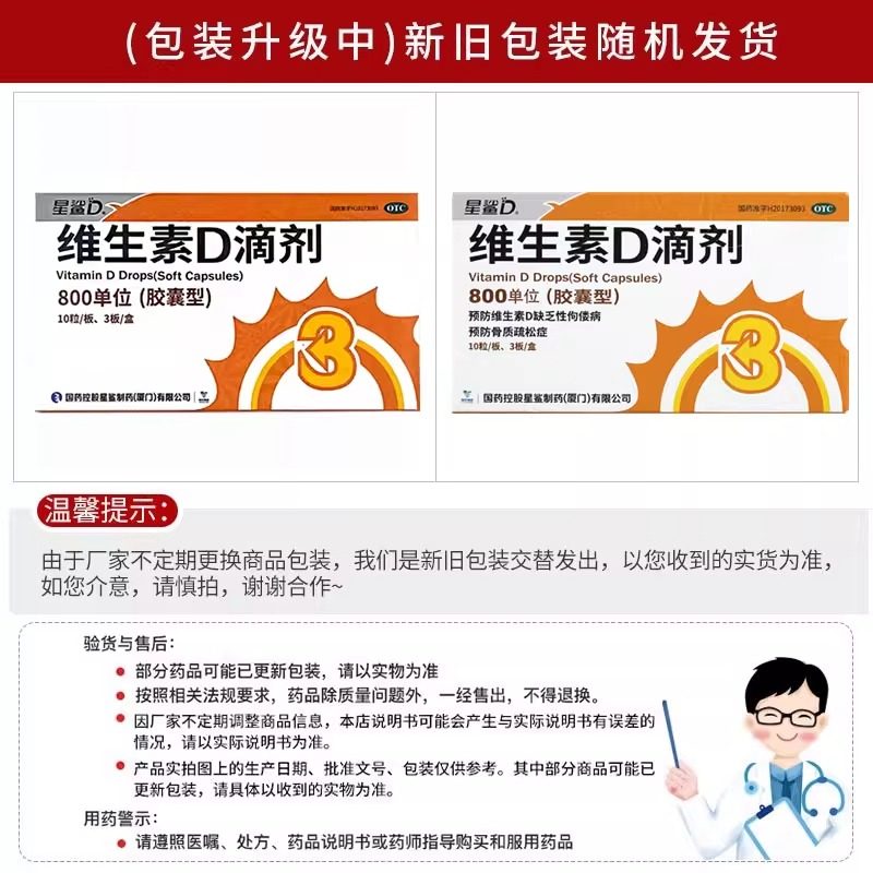 星鲨维生素D滴剂缺乏骨质疏松800IU单位老人成人儿童vd胶囊30粒