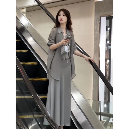 时尚高级感连衣裙女2025夏季新款设计感轻薄防晒衬衫吊带裙两件套