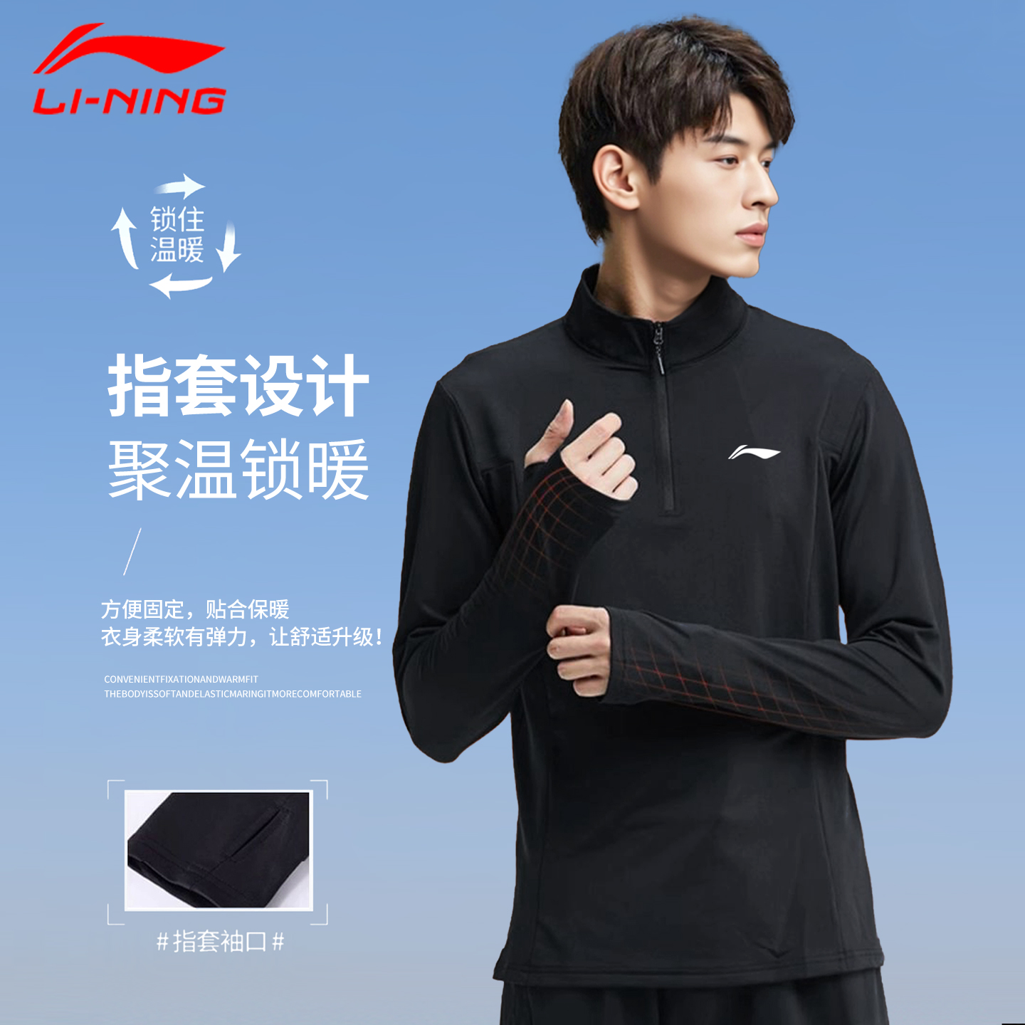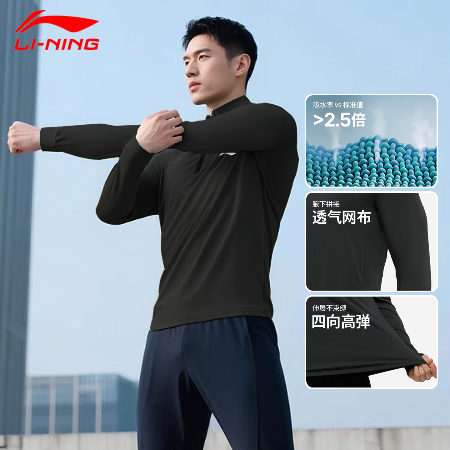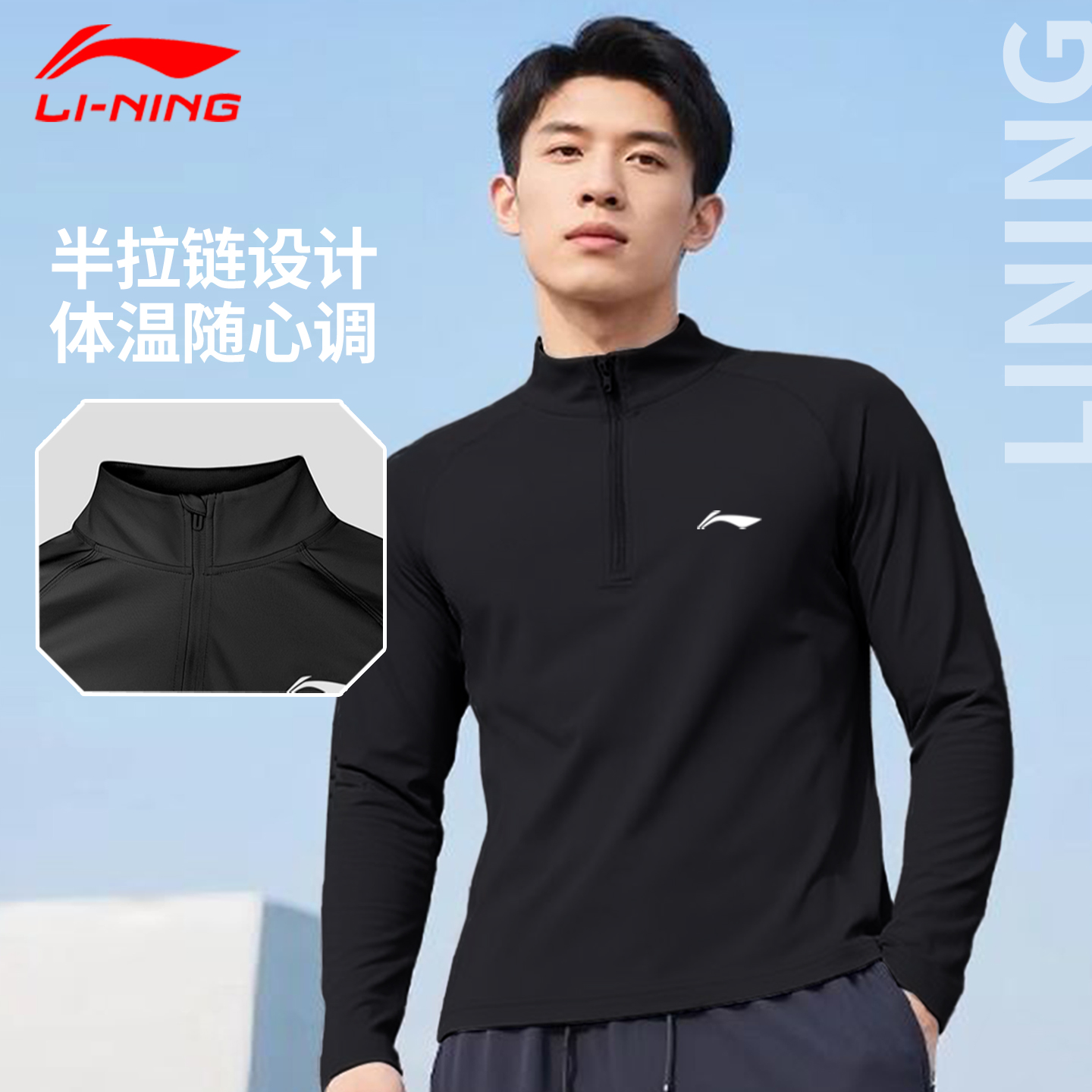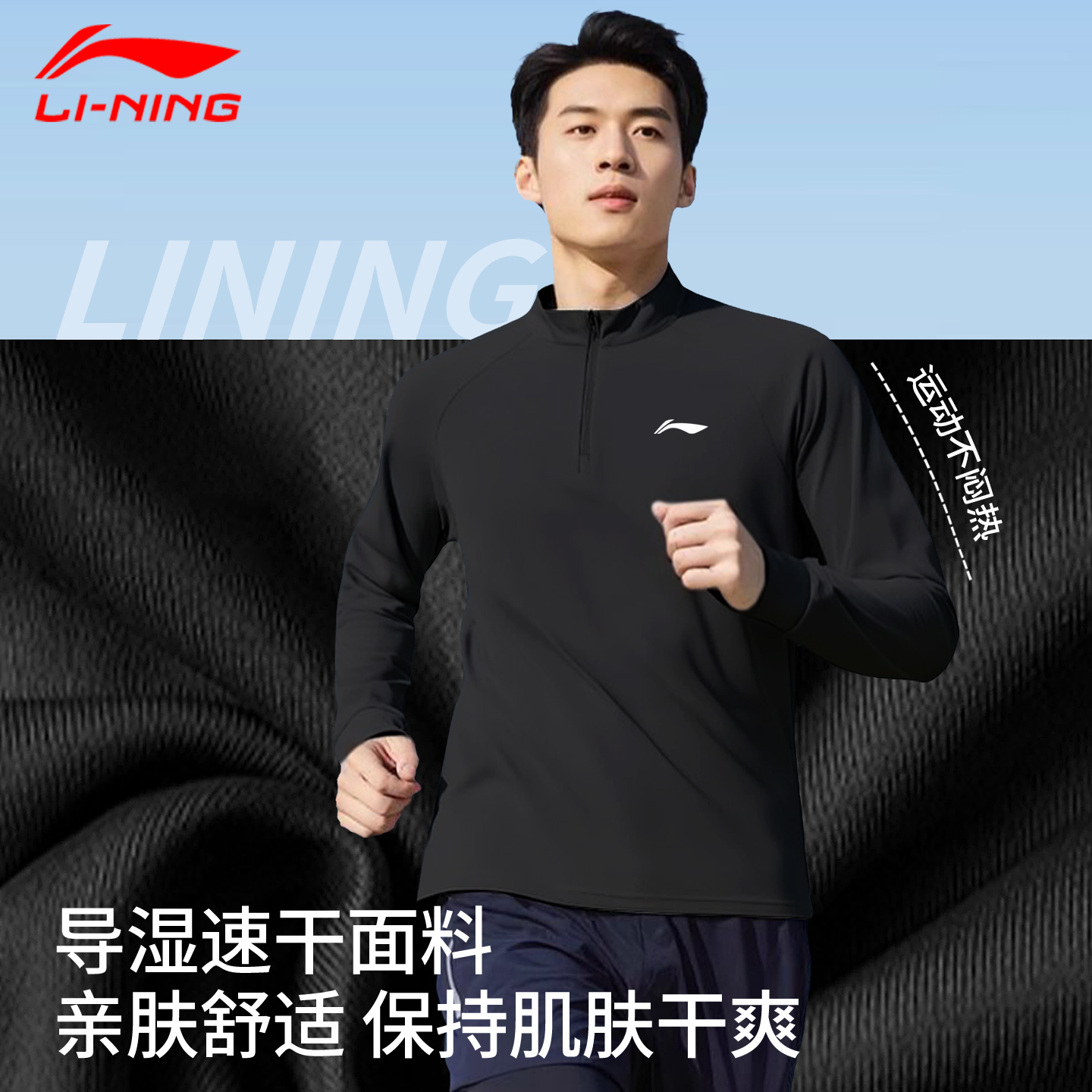 李宁长袖T恤男速干运动衣春秋季2025新款半拉链跑步篮球训练上衣