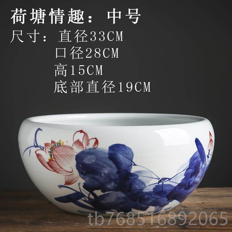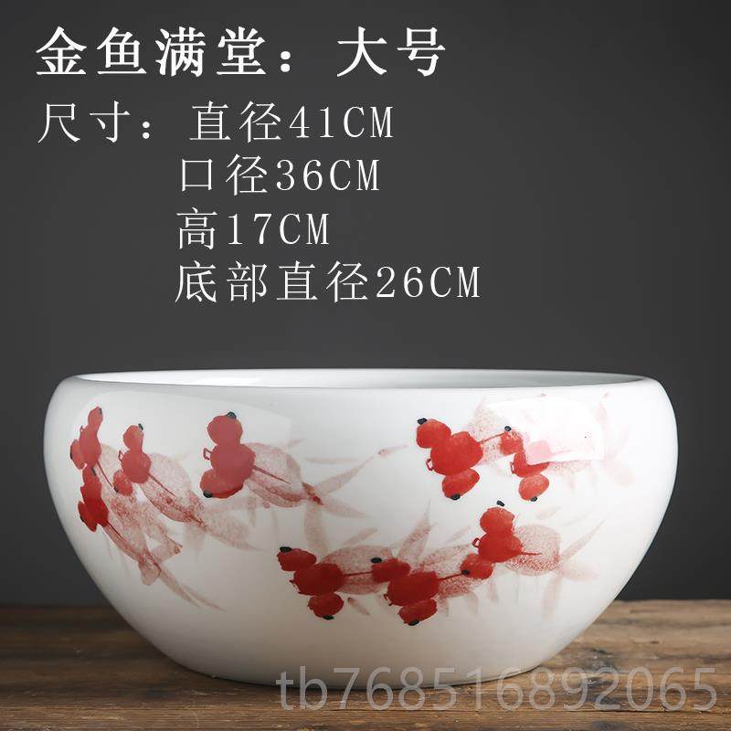 高档陶龟瓷鱼缸养鱼盆乌缸花草桌创意盆金家用客面厅办公室大号收