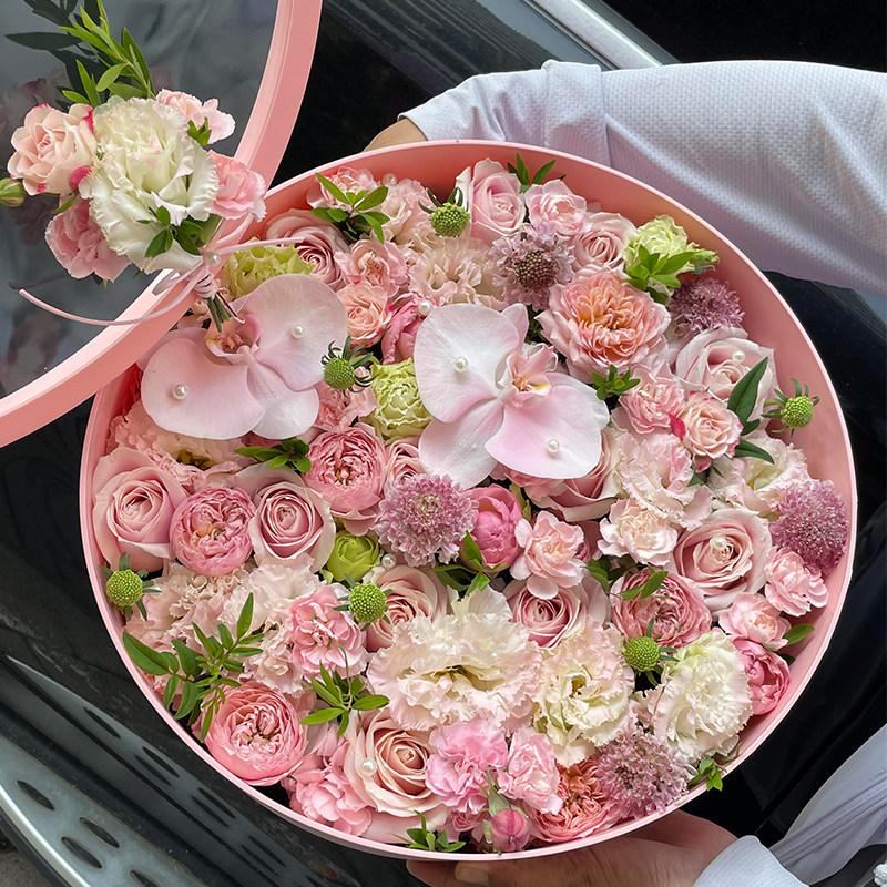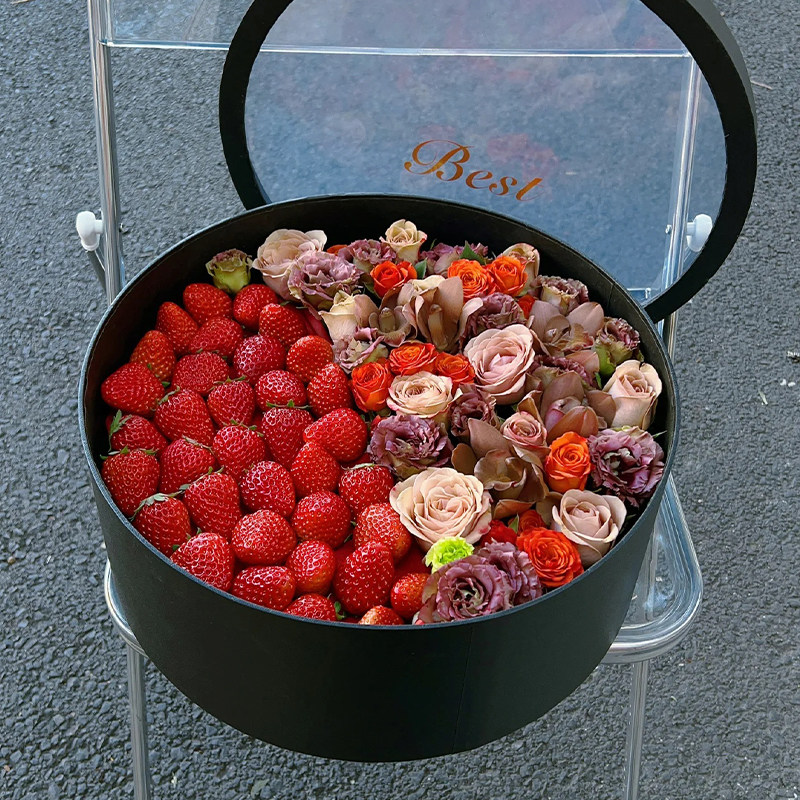 束脩六礼盒防水圆形礼盒永生花玫瑰花口红饰品花艺高端时尚网红礼