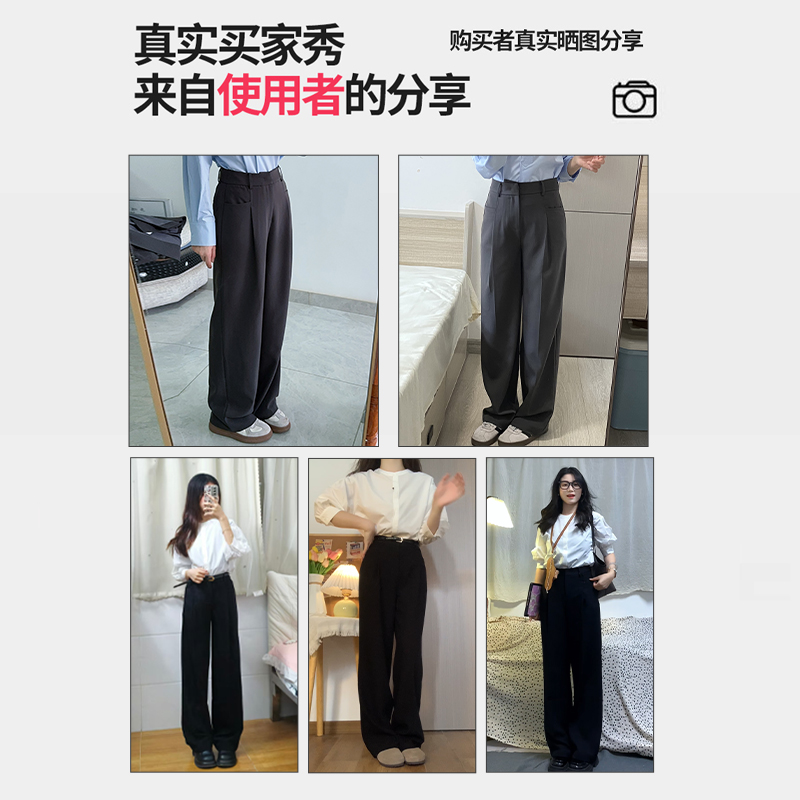 图曼朵黑色直筒西装裤女秋面试职业西裤通勤垂感正装小个子阔腿裤