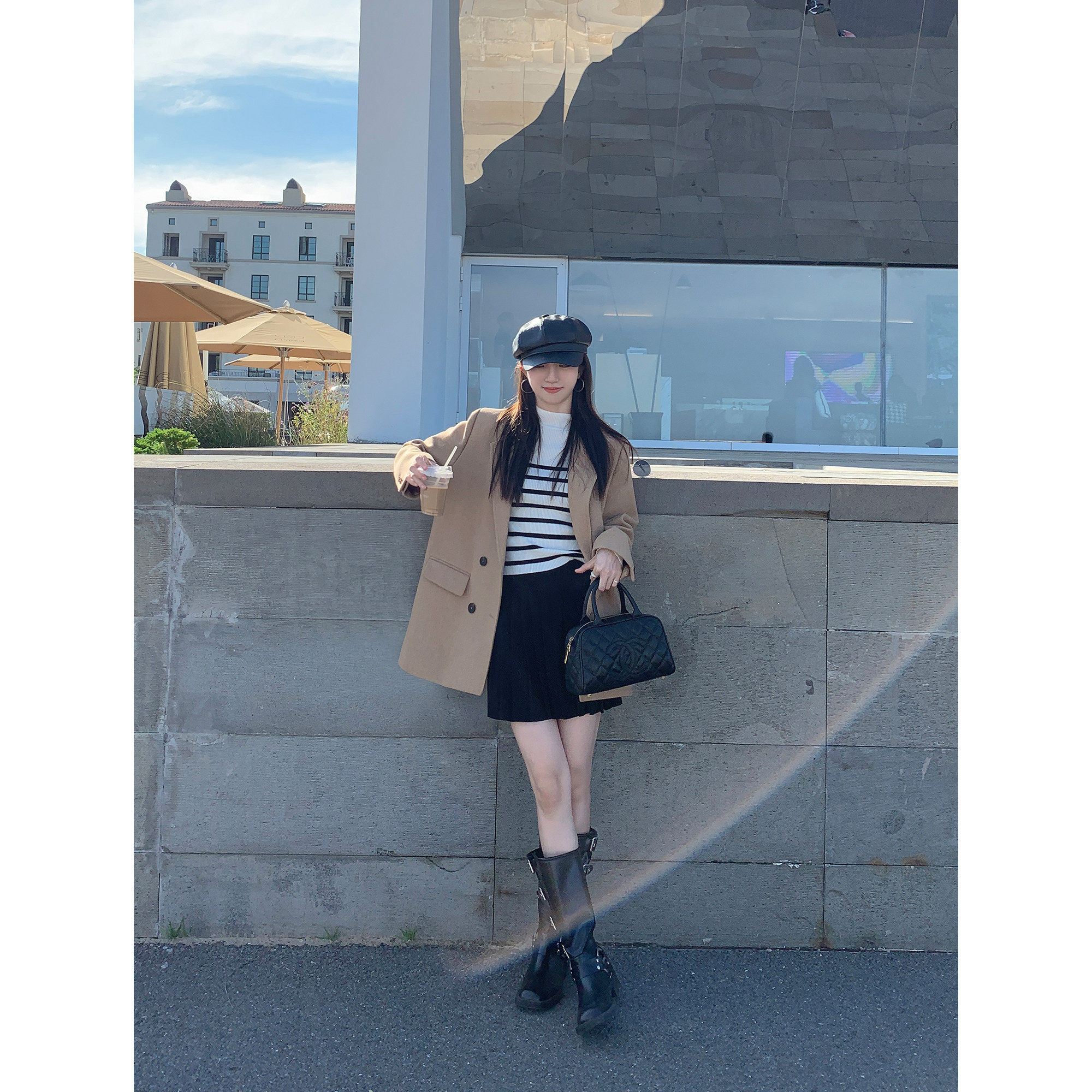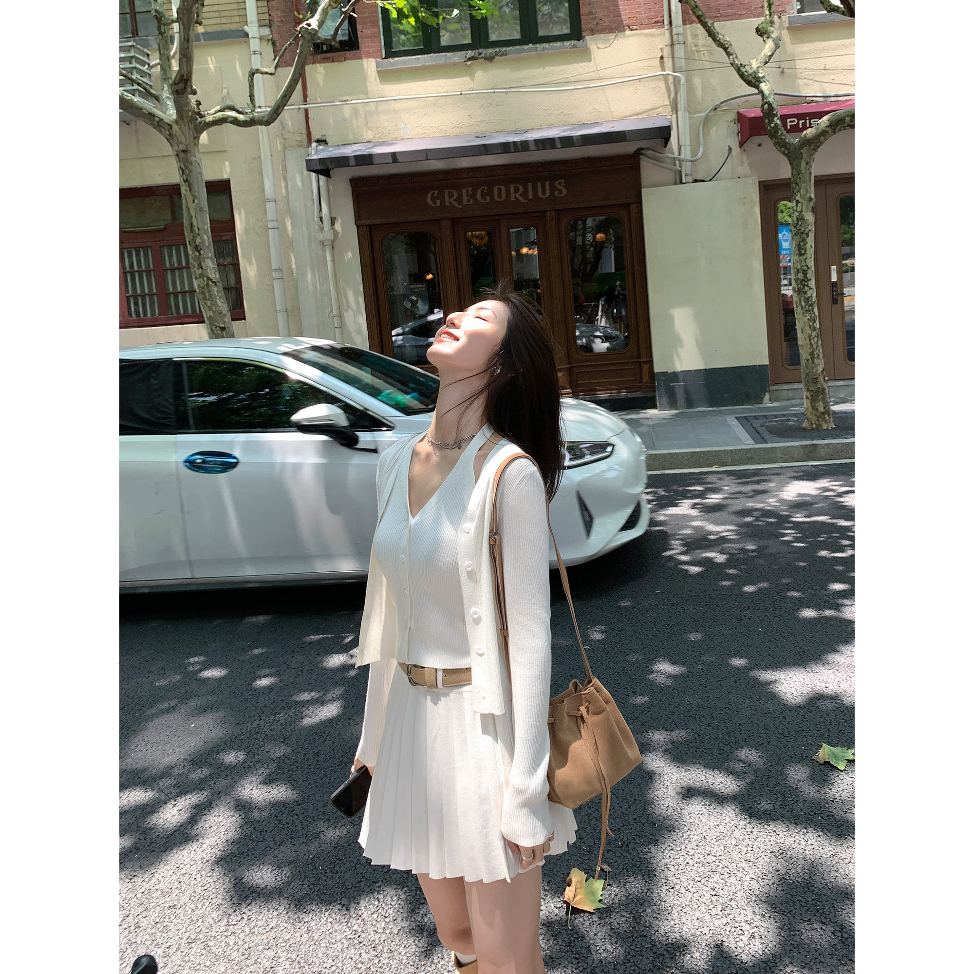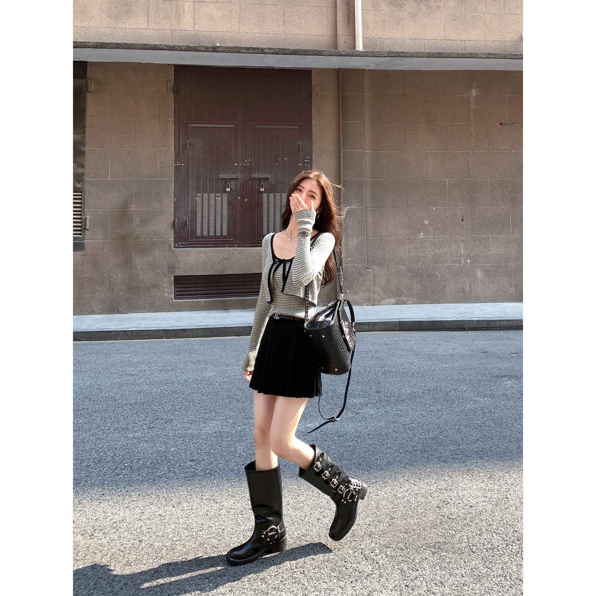 MULVAN 针织半身裙女短裙2025春秋百搭高腰显瘦a字裙子黑色百褶裙